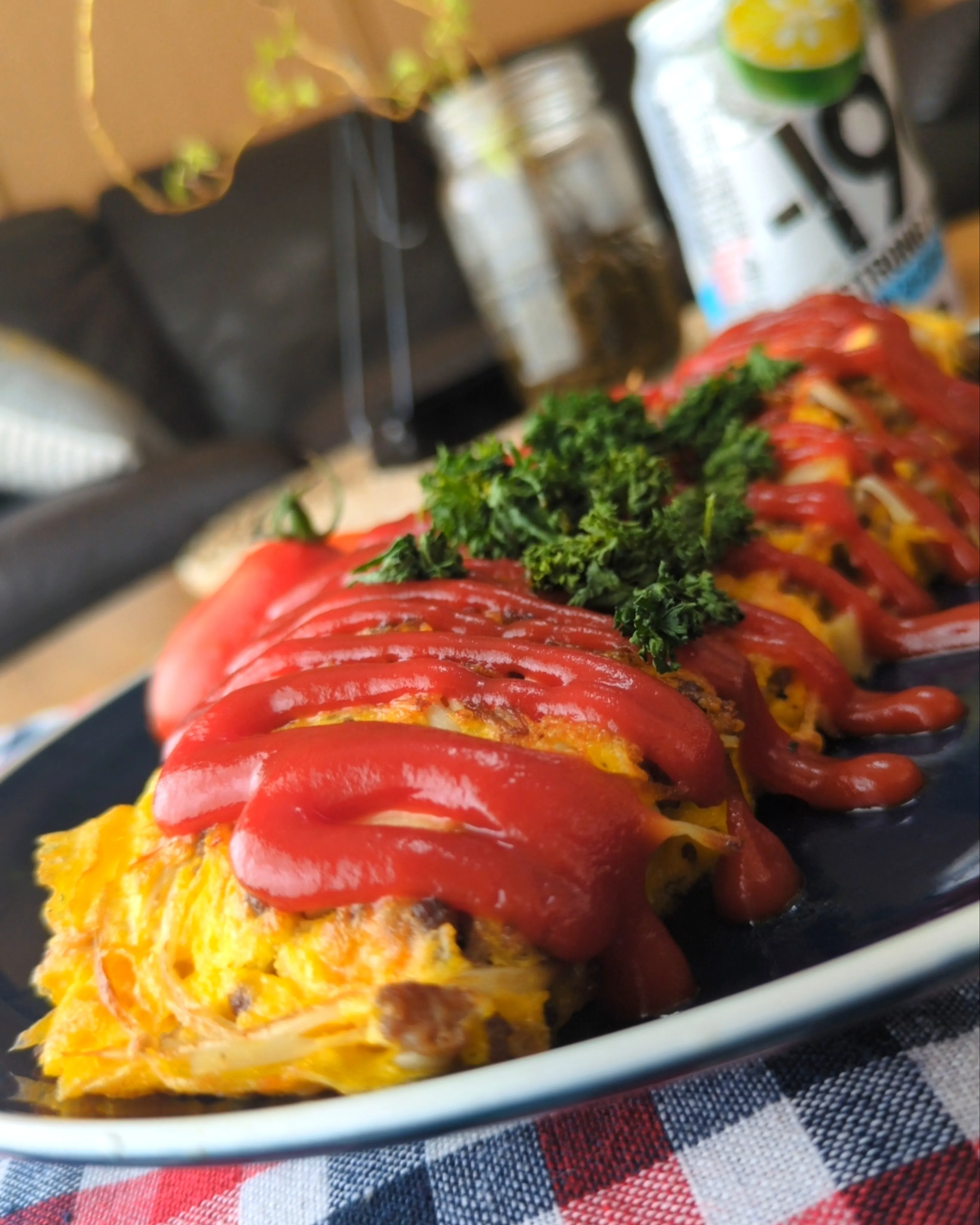 子供の頃よくオムレツ作って貰ってたんだけど結構作るの面倒で私あんまり作らないか、今2人家族だからでっかく作っちゃう!