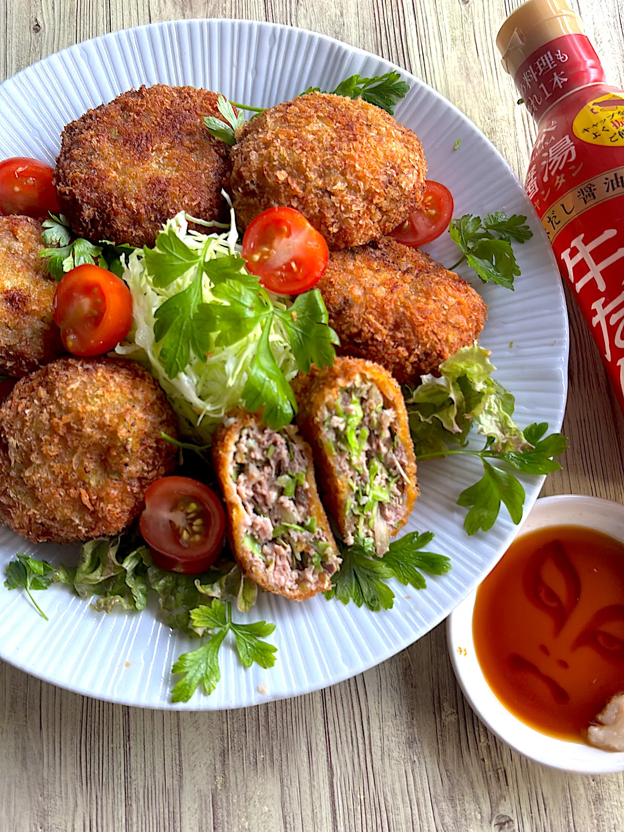 メンチカツも醤油 ~牛だし山葵ちょんちょんだとまるで牛カツ🐮