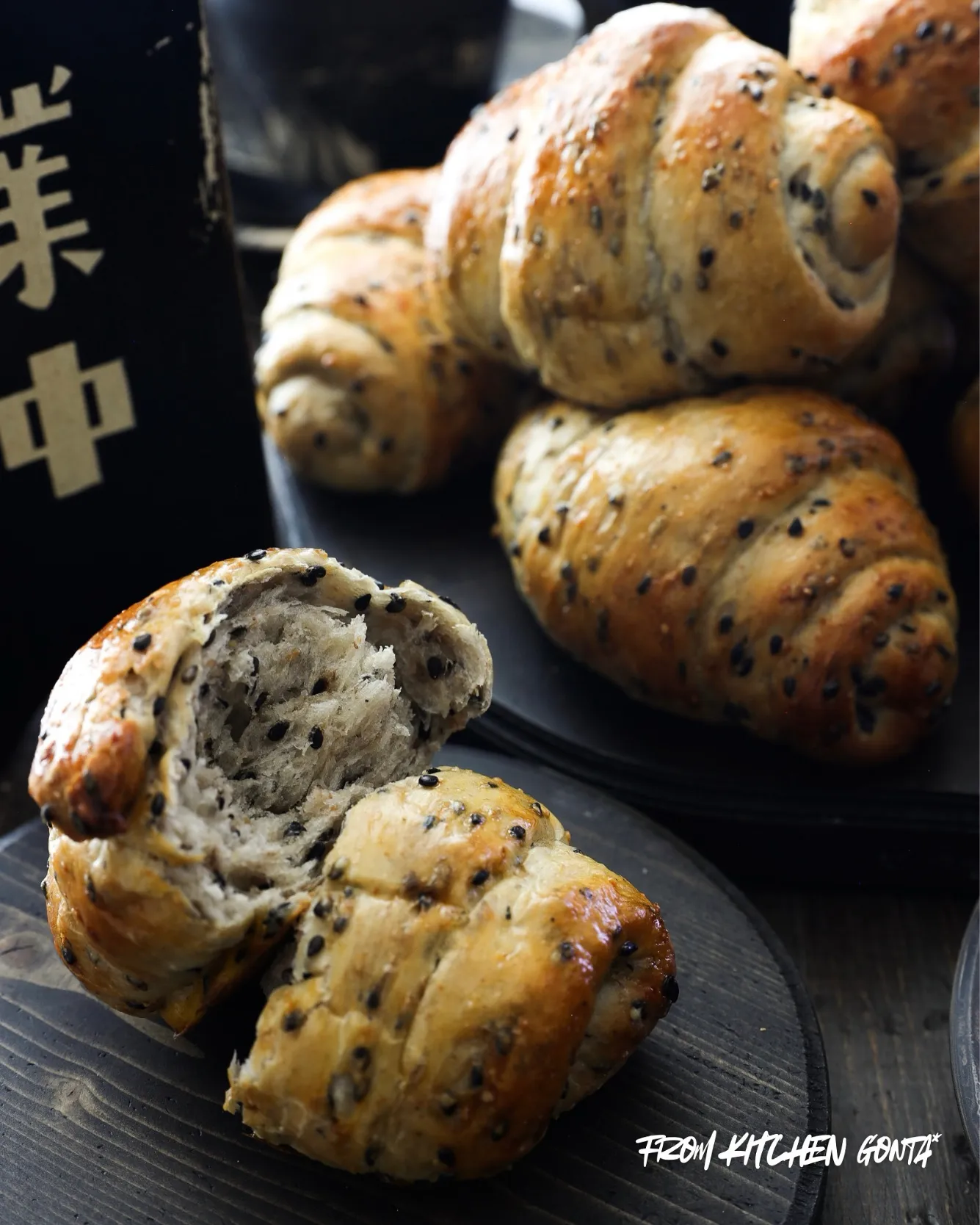 ◉米粉でモチモチ✨黒胡麻ロールパン