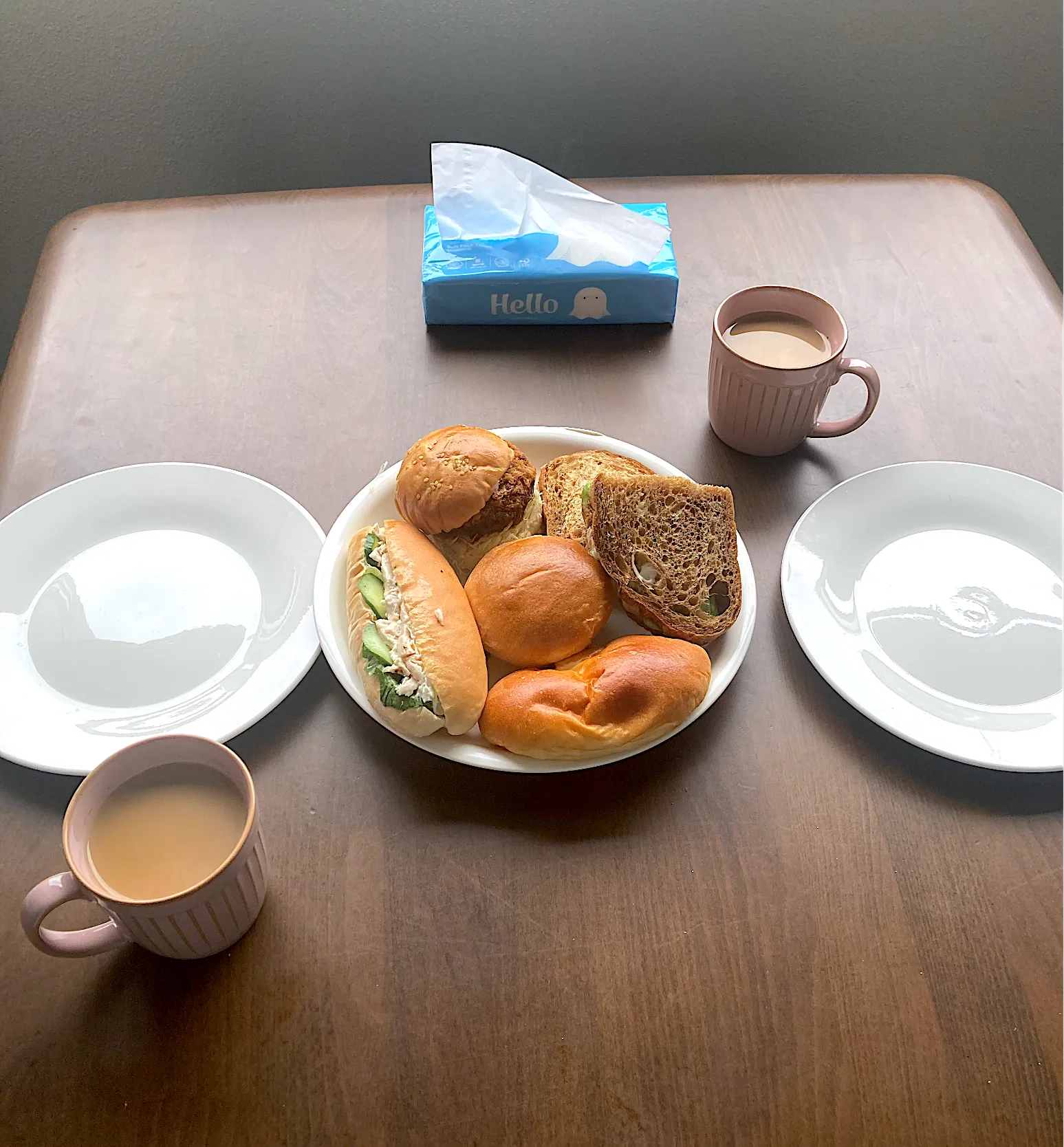 メンチカツバーガー、レモンチキンサンド、トマトアボガドサンド、クリームパン、チョコあんパンをいただきまーす 食べ切れるかなあとの懸念も一掃、美味しくてペロッと完食しました😋(実況中継終了)