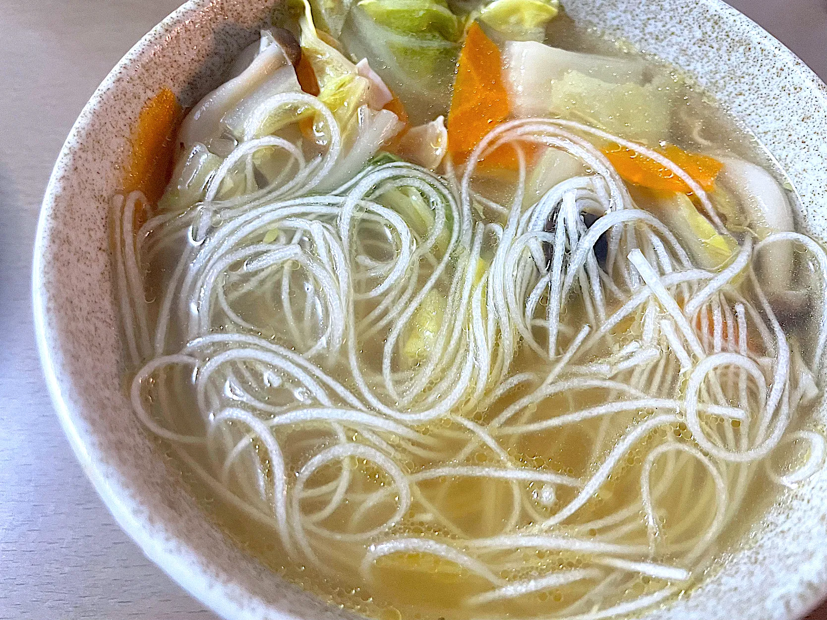 春雨麺を入れて春雨スープにしてみた!ごま油も投入して風味も良し!