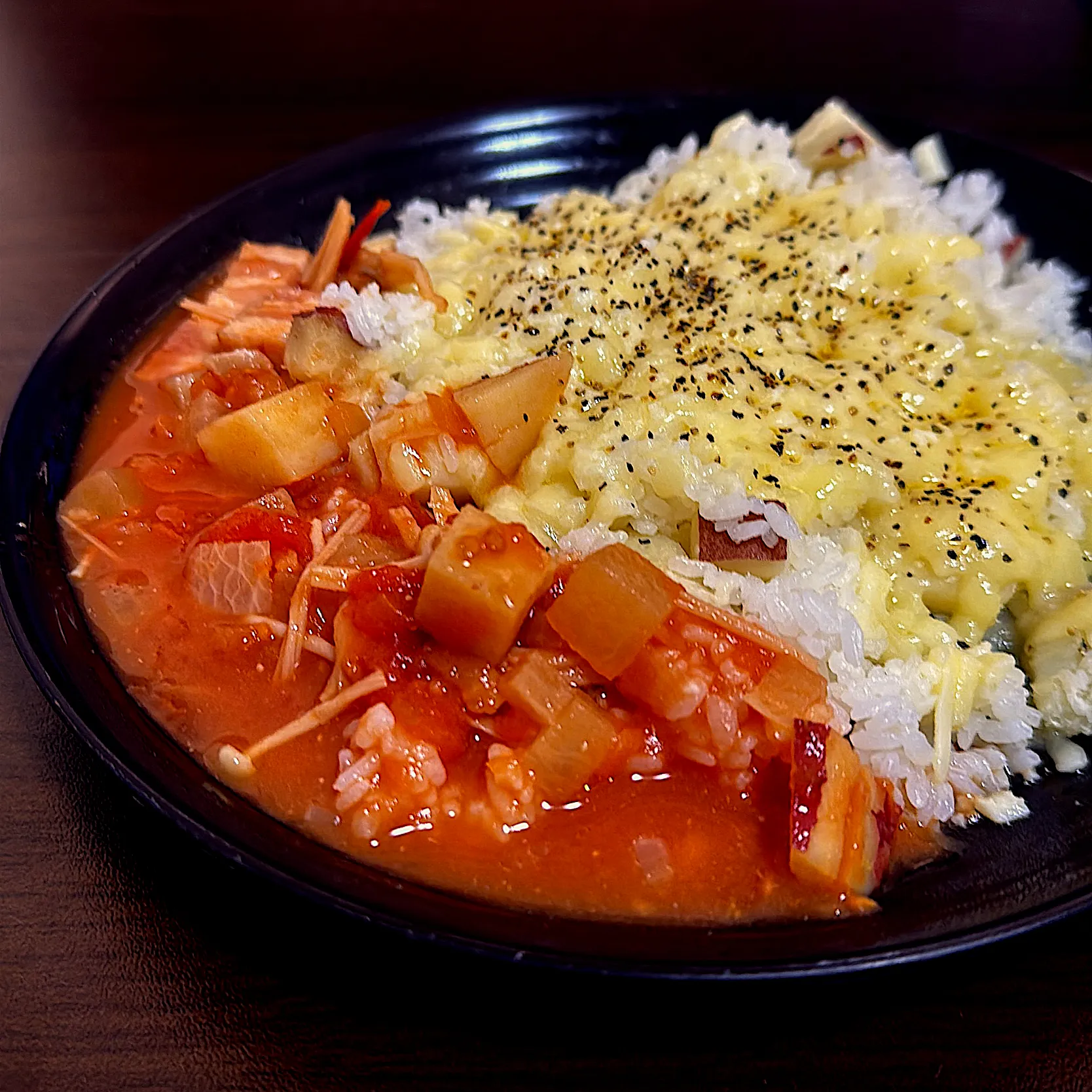 #合わせ味噌 #トマト缶 #大根 #人参 #えのき #舞茸 #しょうが #ニンニク #ベーコン #さつまいも