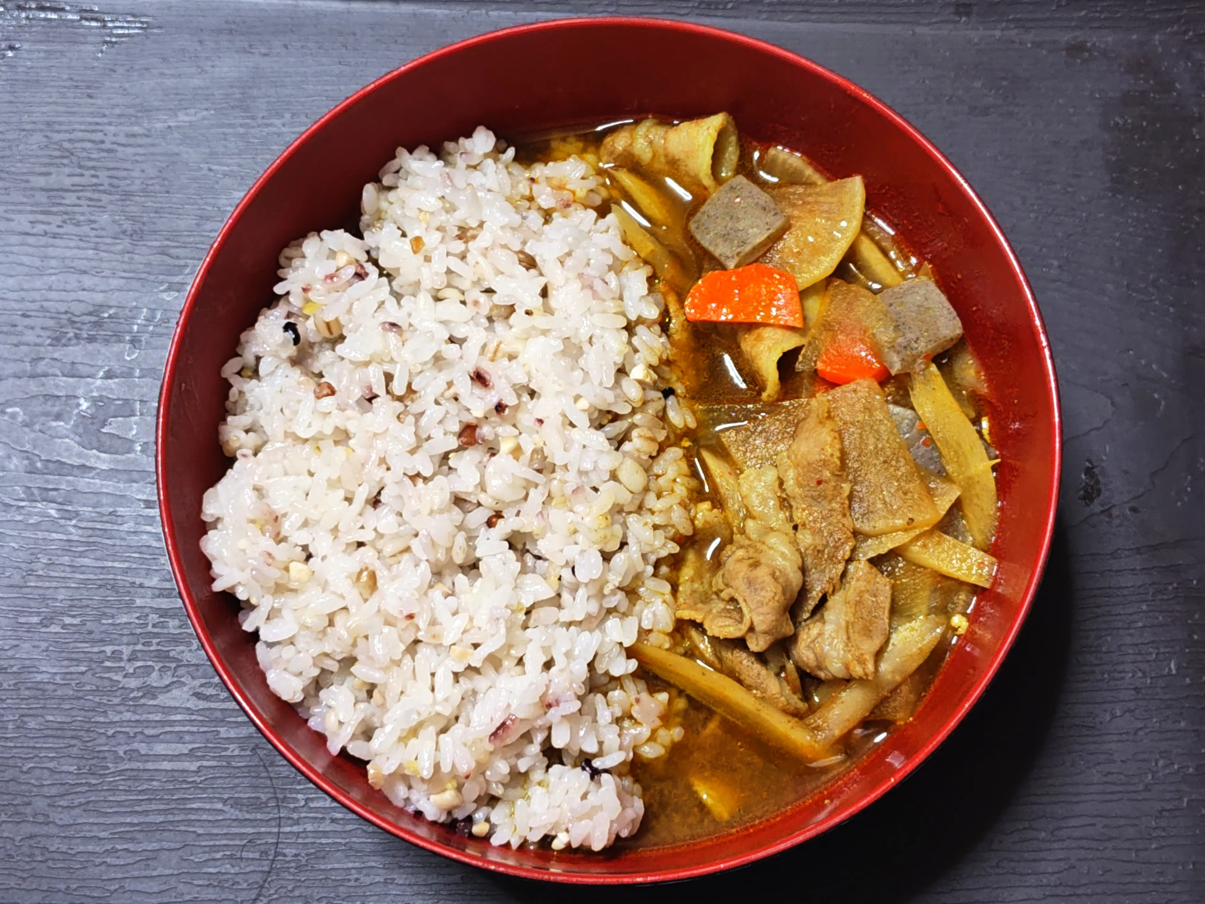 今日の朝ごはん(十六穀ごはんのポークスープカレ)