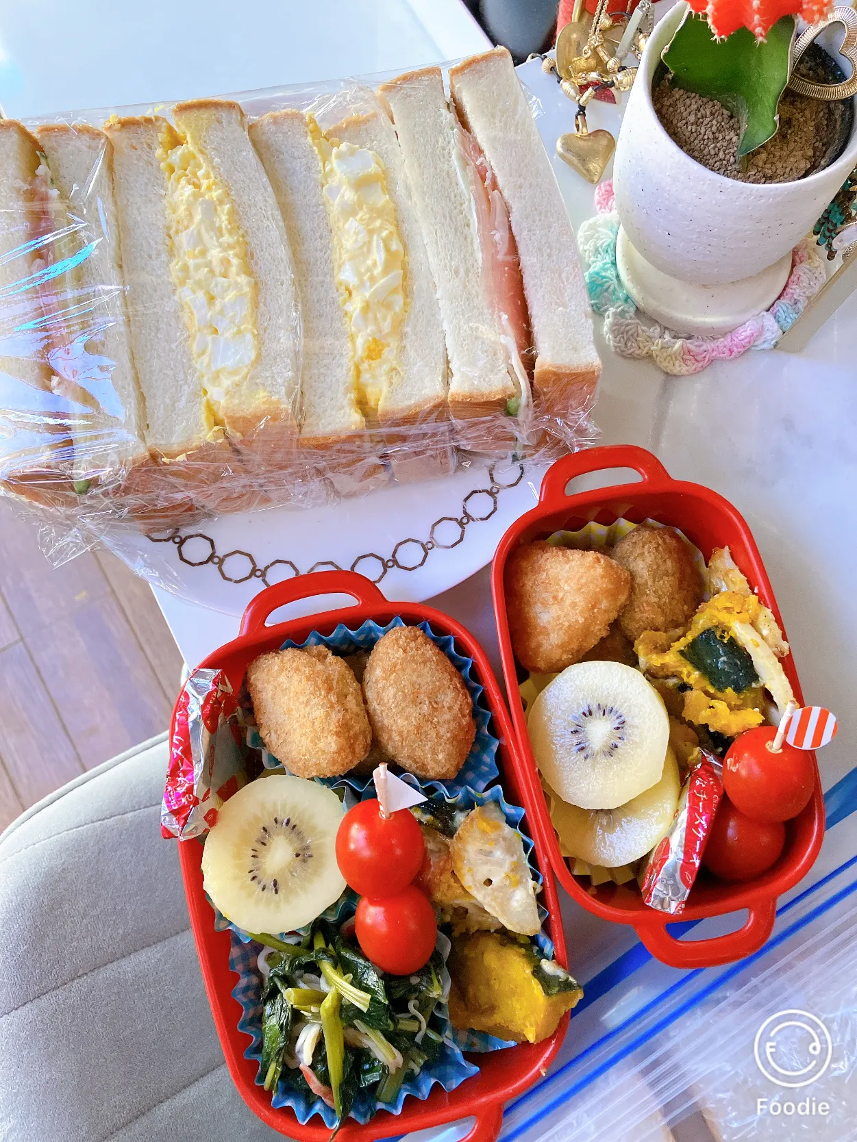 卵サンドイッチに生ハムきゅうりサンドイッチ゚+.゚(´▽`人)゚+.゚