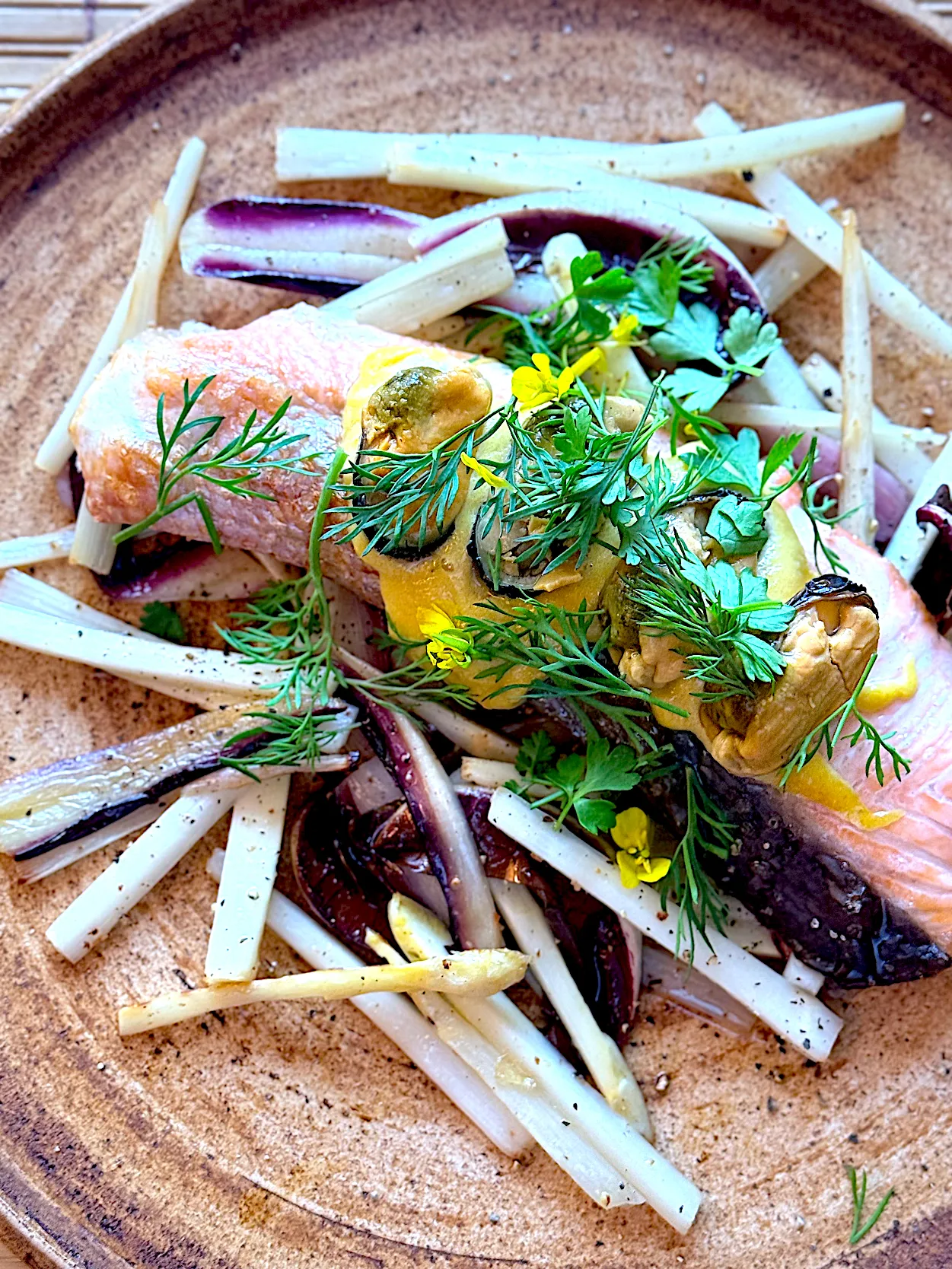 #サーモン #ムール貝 #ホワイトアスパラガス #タルティーボ #家庭料理 #モダン料理 #モダンアメリカ料理 #おうちイタリアン #釋永岳
