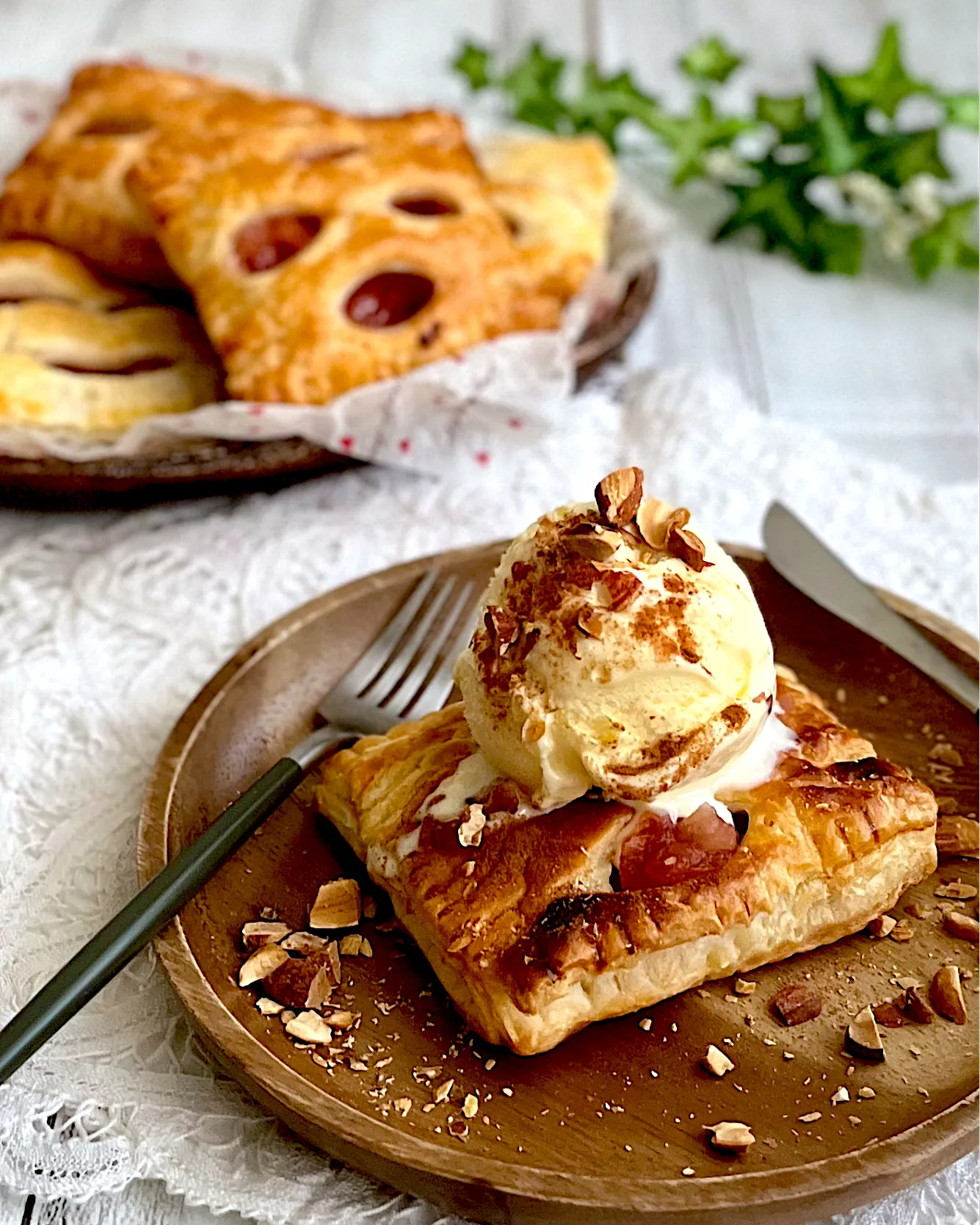 でも中にはカスタードクリームとりんごのフィリングがたっぷり入ってます🫶