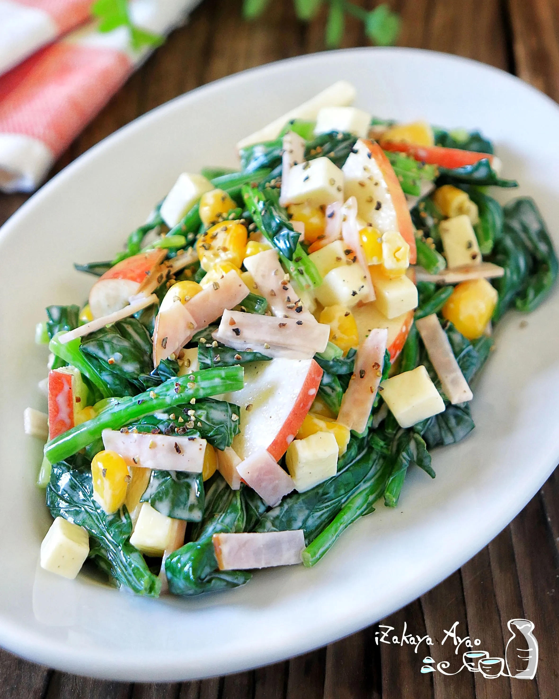#給食 #給食メニュー #りんご #ほうれん草 #サラダ