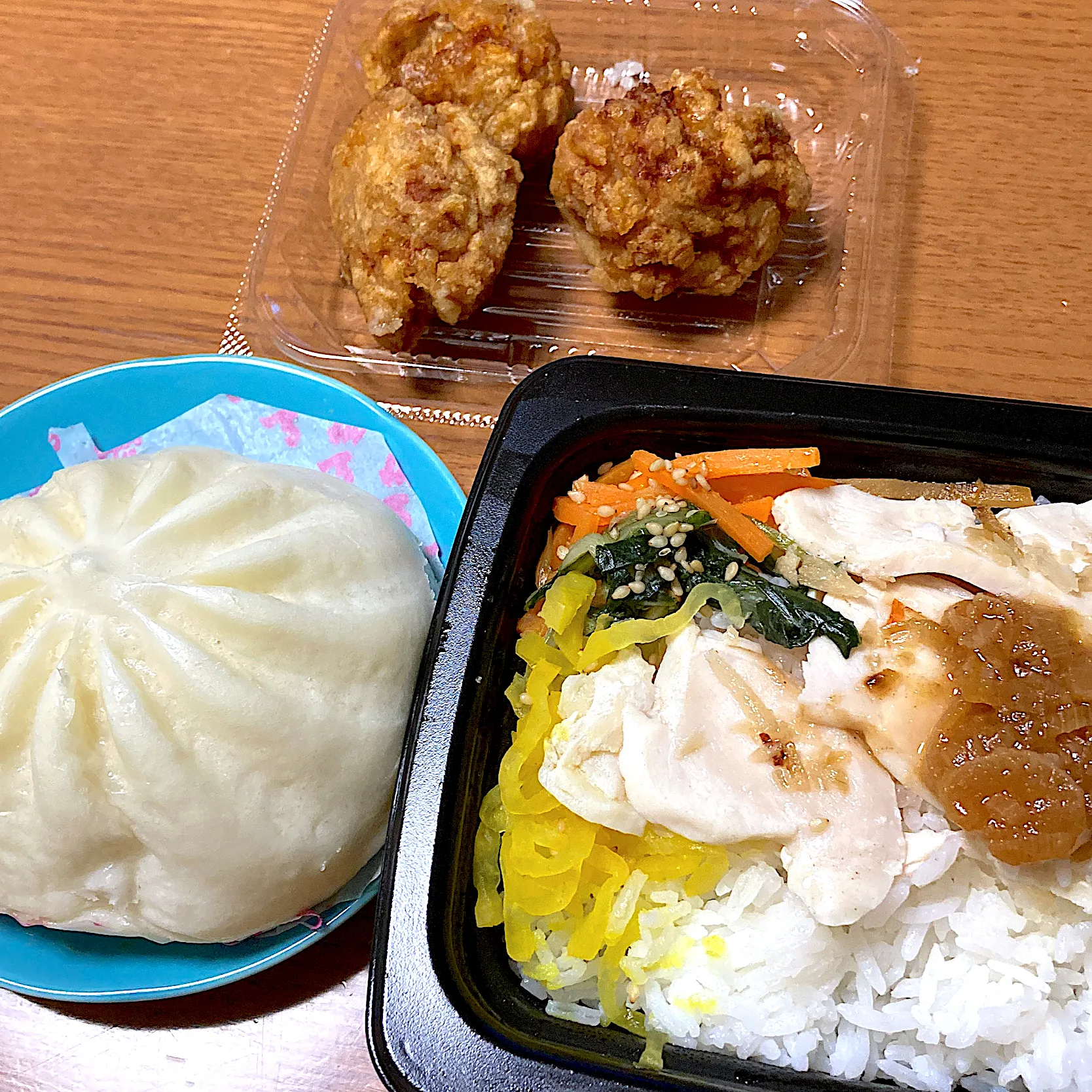 #唐揚げ #肉まん #晩ごはん #温めただけ