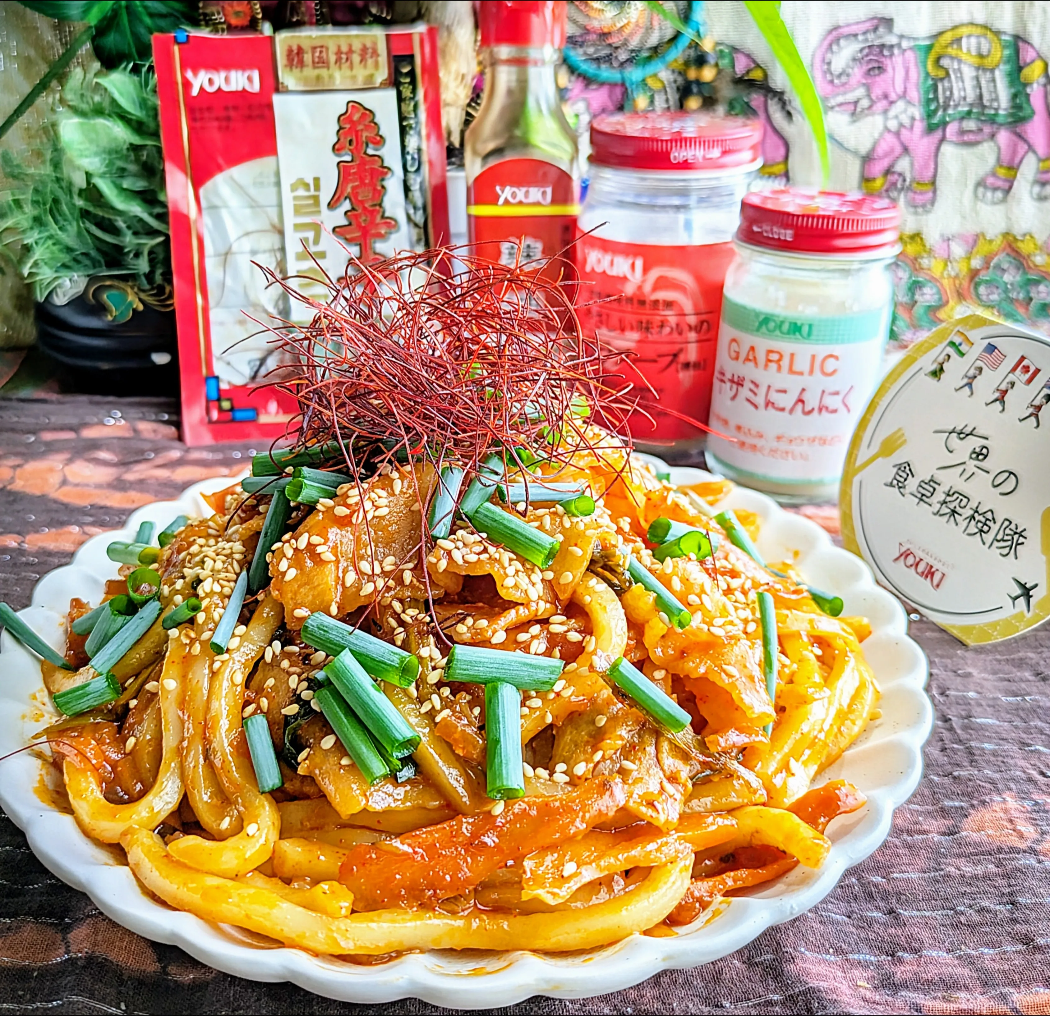自家製コチュジャンをたっぷりと使ったピリ辛韓国風焼きうどんです✨💕