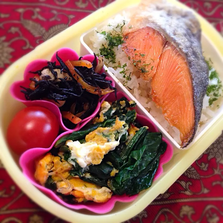 焼き鮭とほうれん草の玉子とじ弁当|もえさん