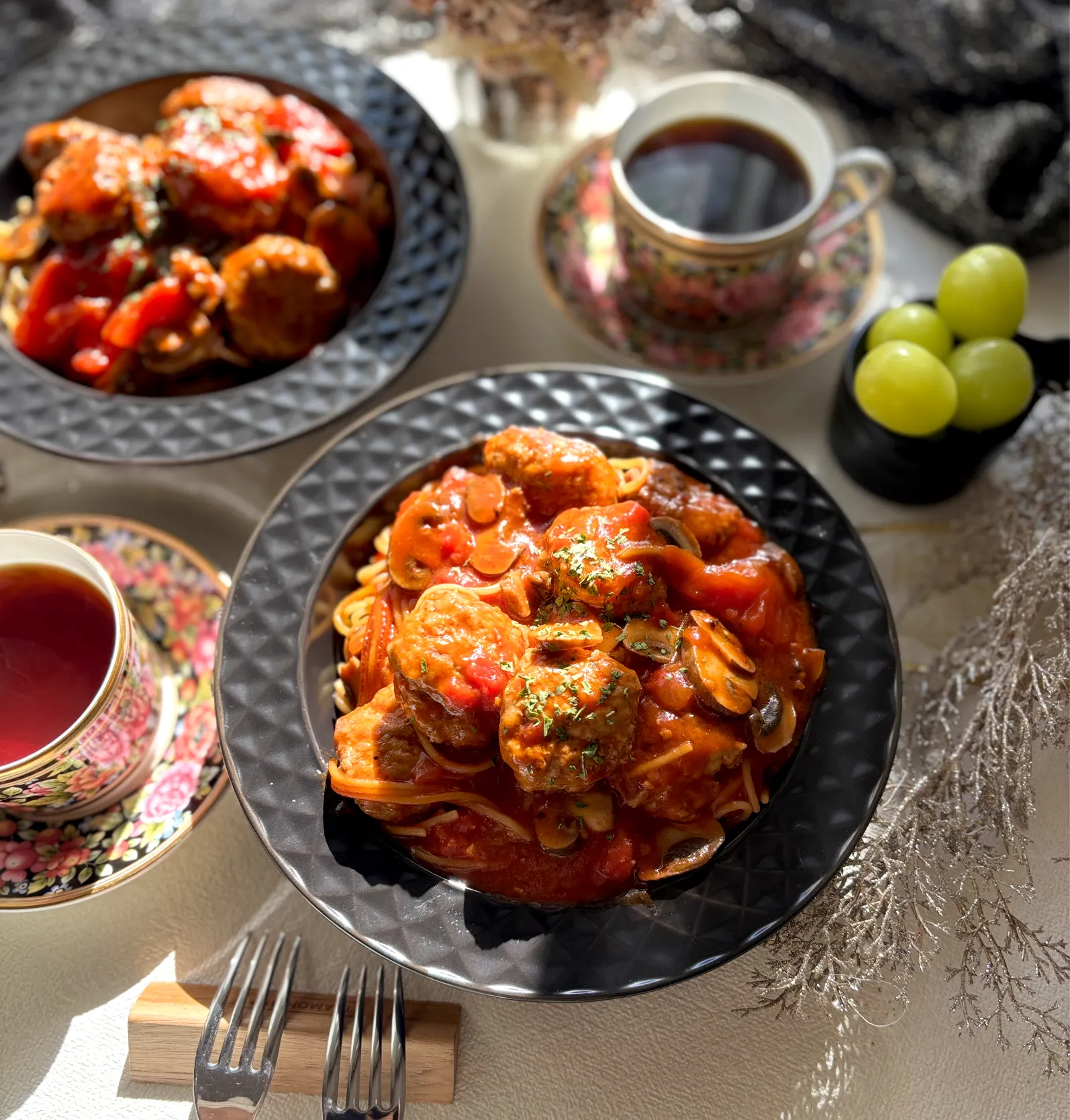 #お昼ご飯#ミートボール#トマトソースパスタ
