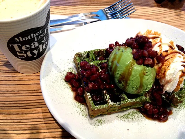 黒糖きな粉ラテ&抹茶あずきワッフル