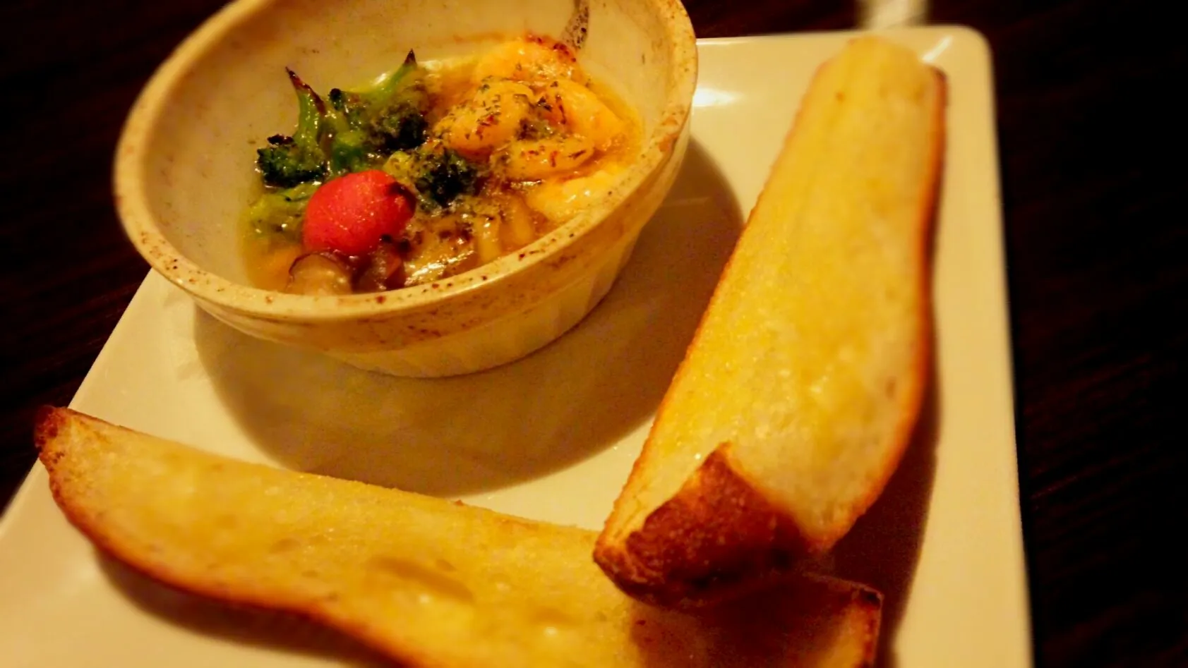 マッシュルーム、アスパラ、エビのアヒージョ🇪🇸