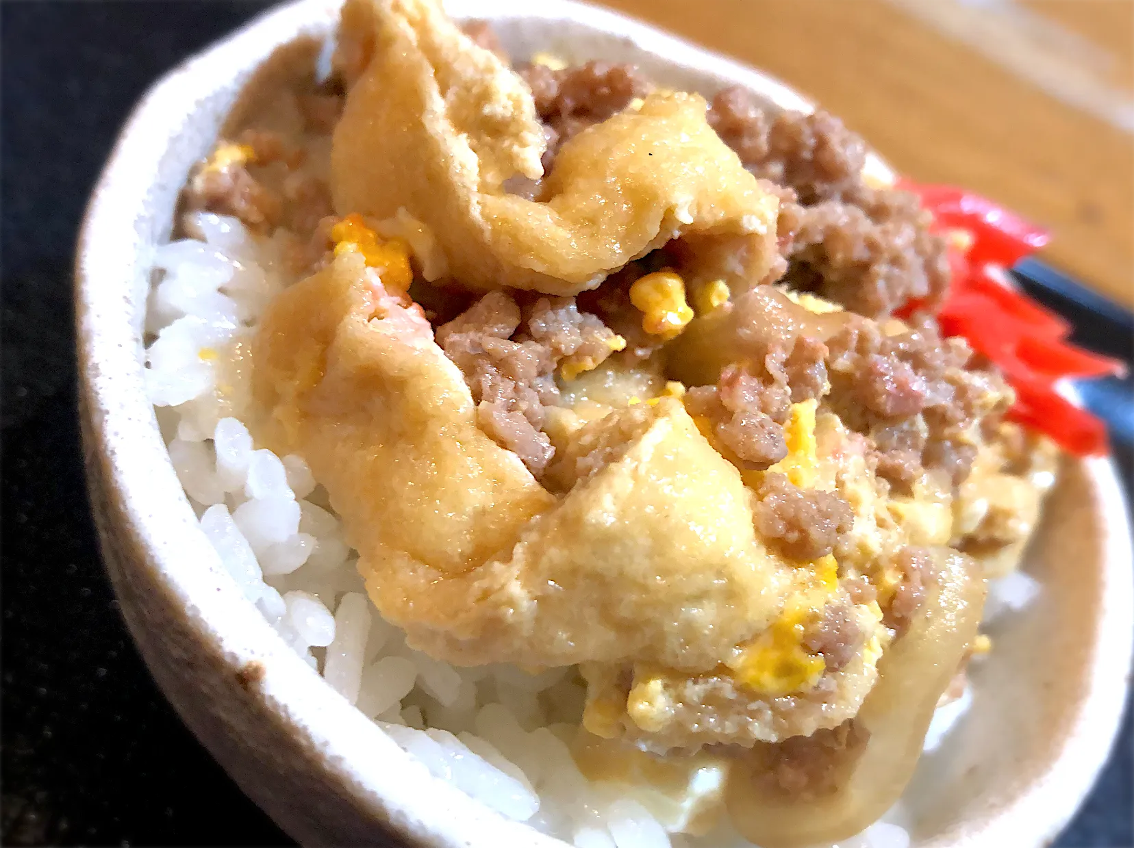 挽肉と油揚げの卵とじ丼