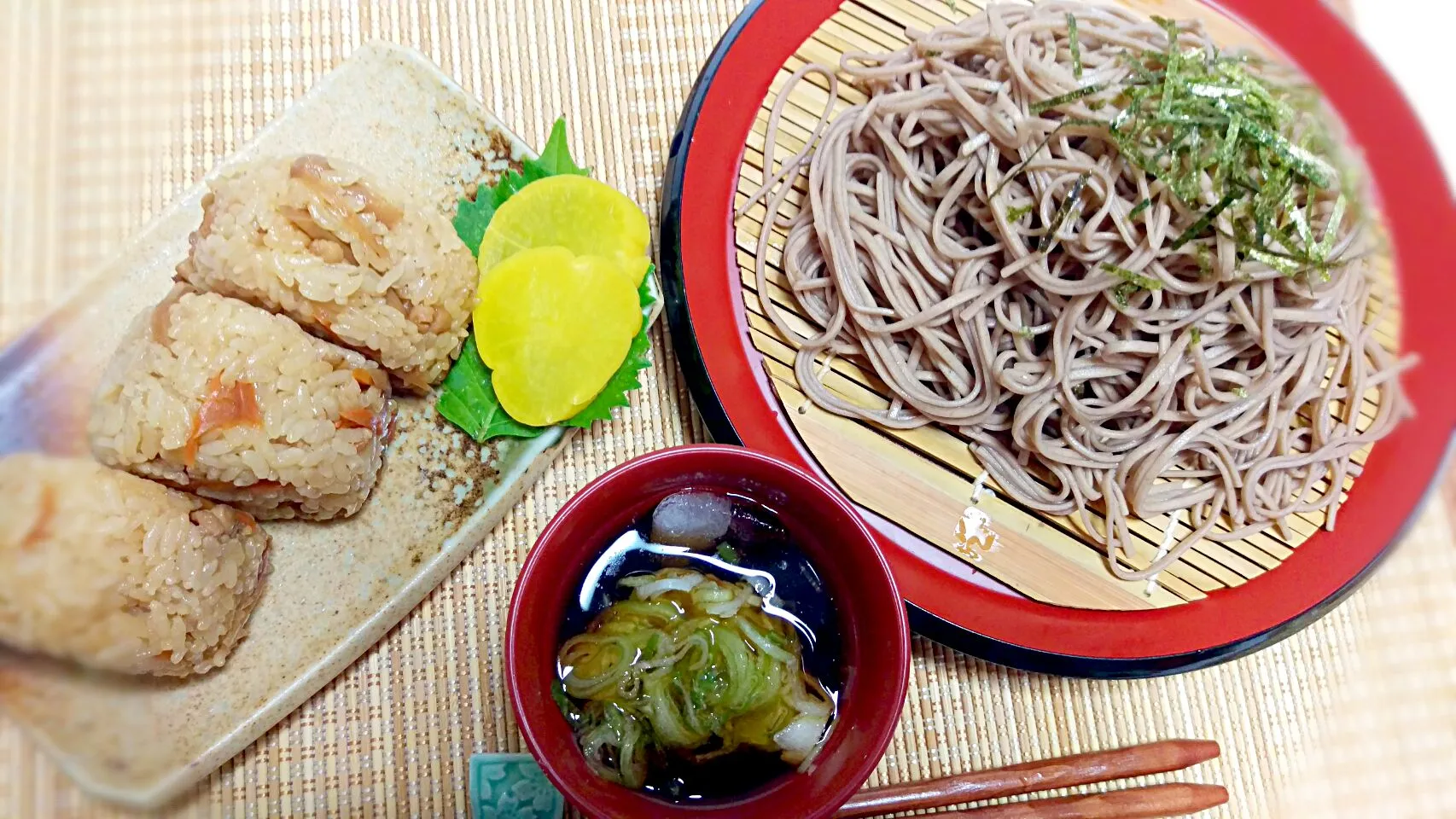 ☆ざる蕎麦☆かしわおにぎり