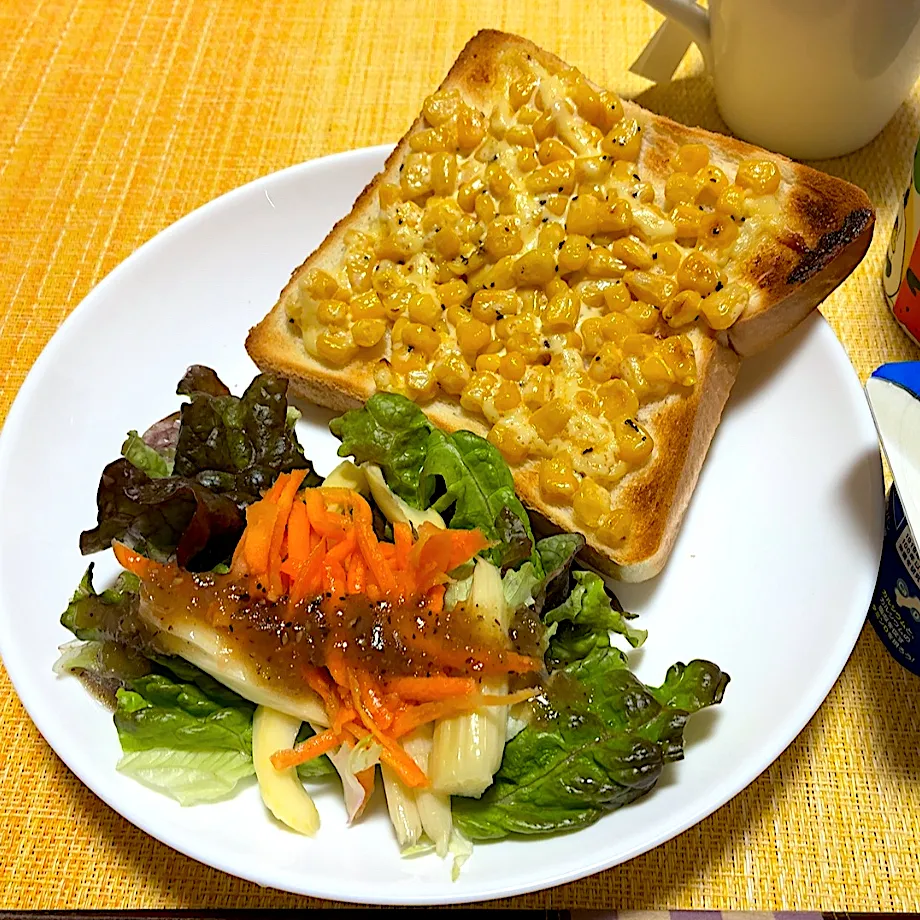 #朝ご飯 #食パン #サラダ #豆乳 #美酢活 #緑茶オレ #ヨーグルト