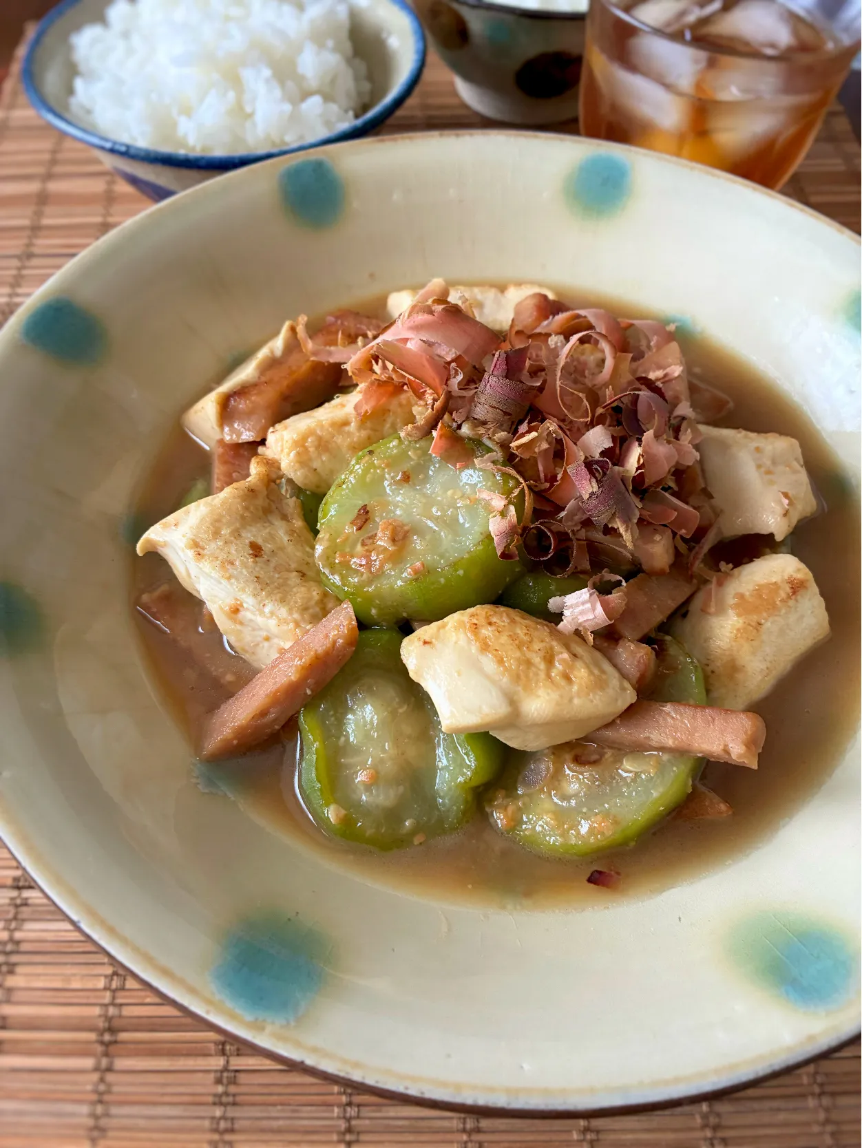ヘチマと豆腐とお肉の味噌炒め煮。