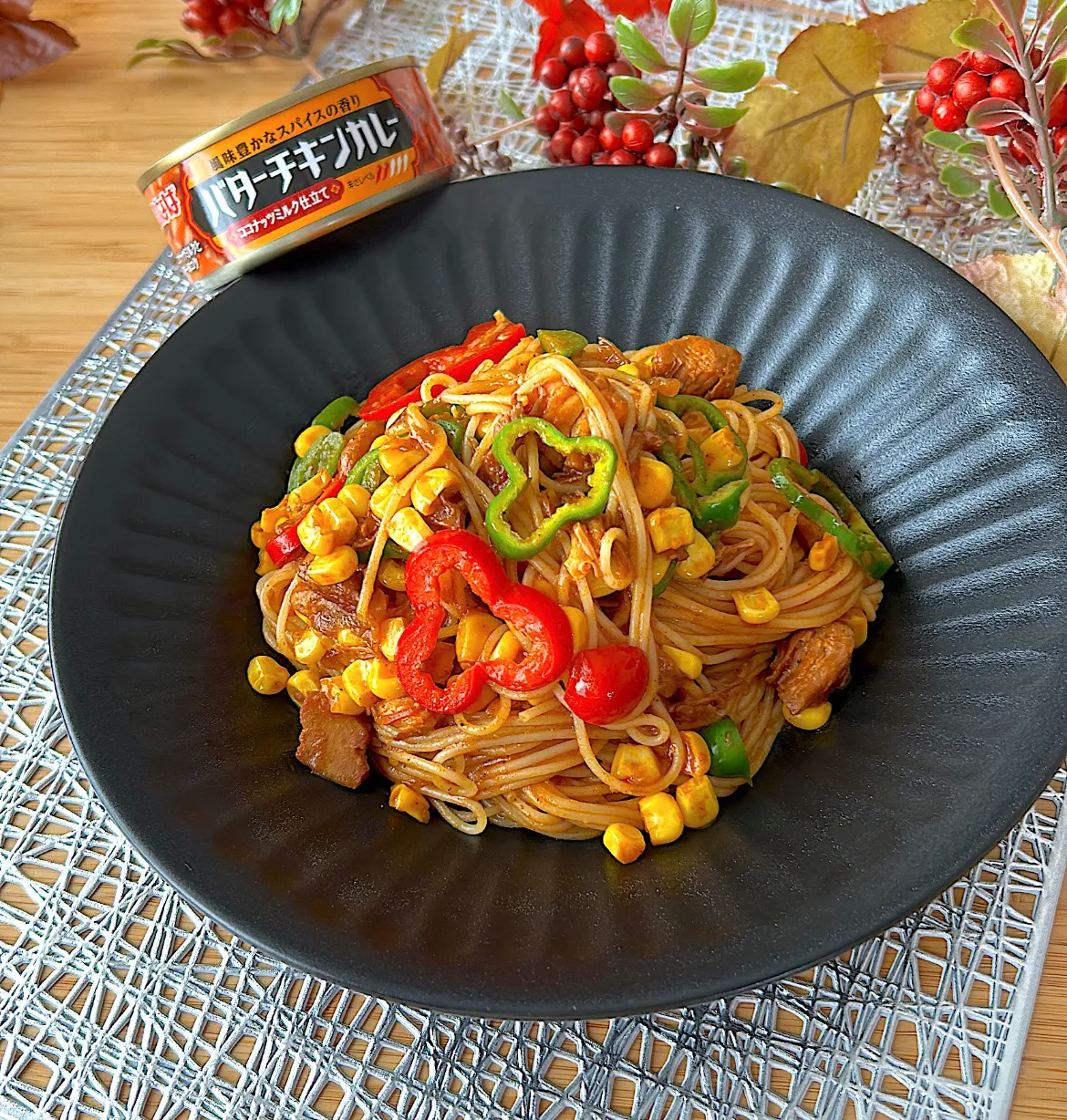 カレー味のナポリタン美味しそう❣️