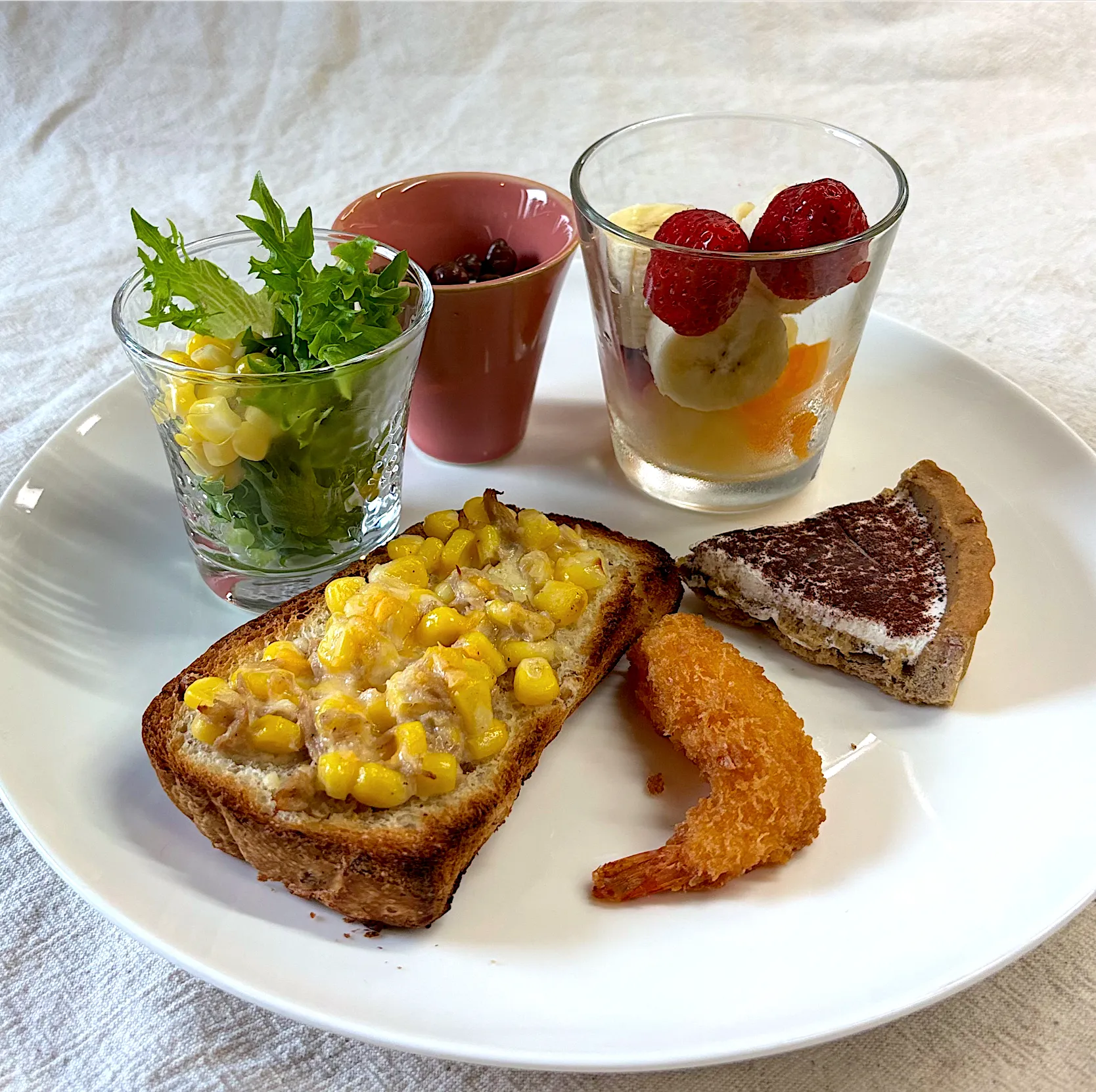 娘の朝ごはんにコーン、ツナ、マヨ、チーズのトースト