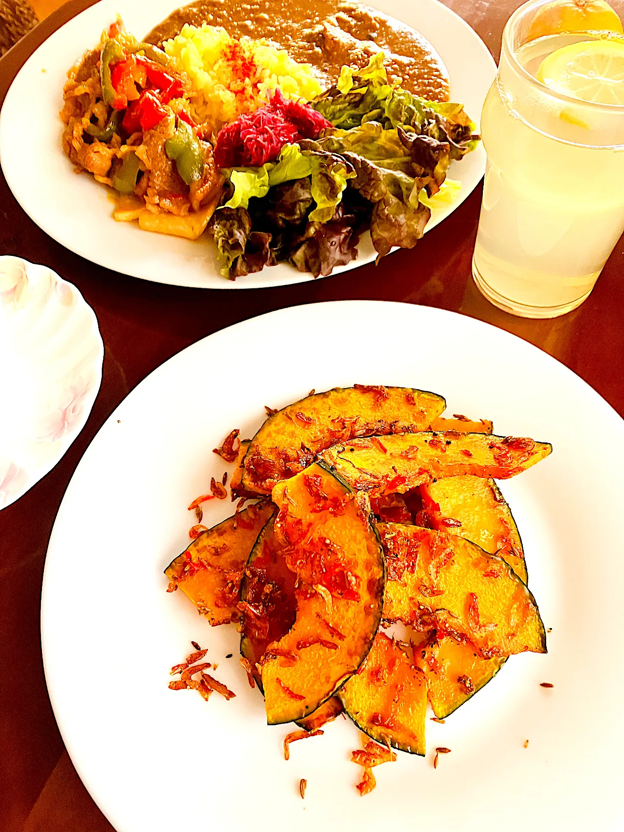 #snapdish #「食卓を紡ぐおたより便」キャンペーン #朝ごはん #スパイスカレー #南瓜ソテー #干し小エビソテー