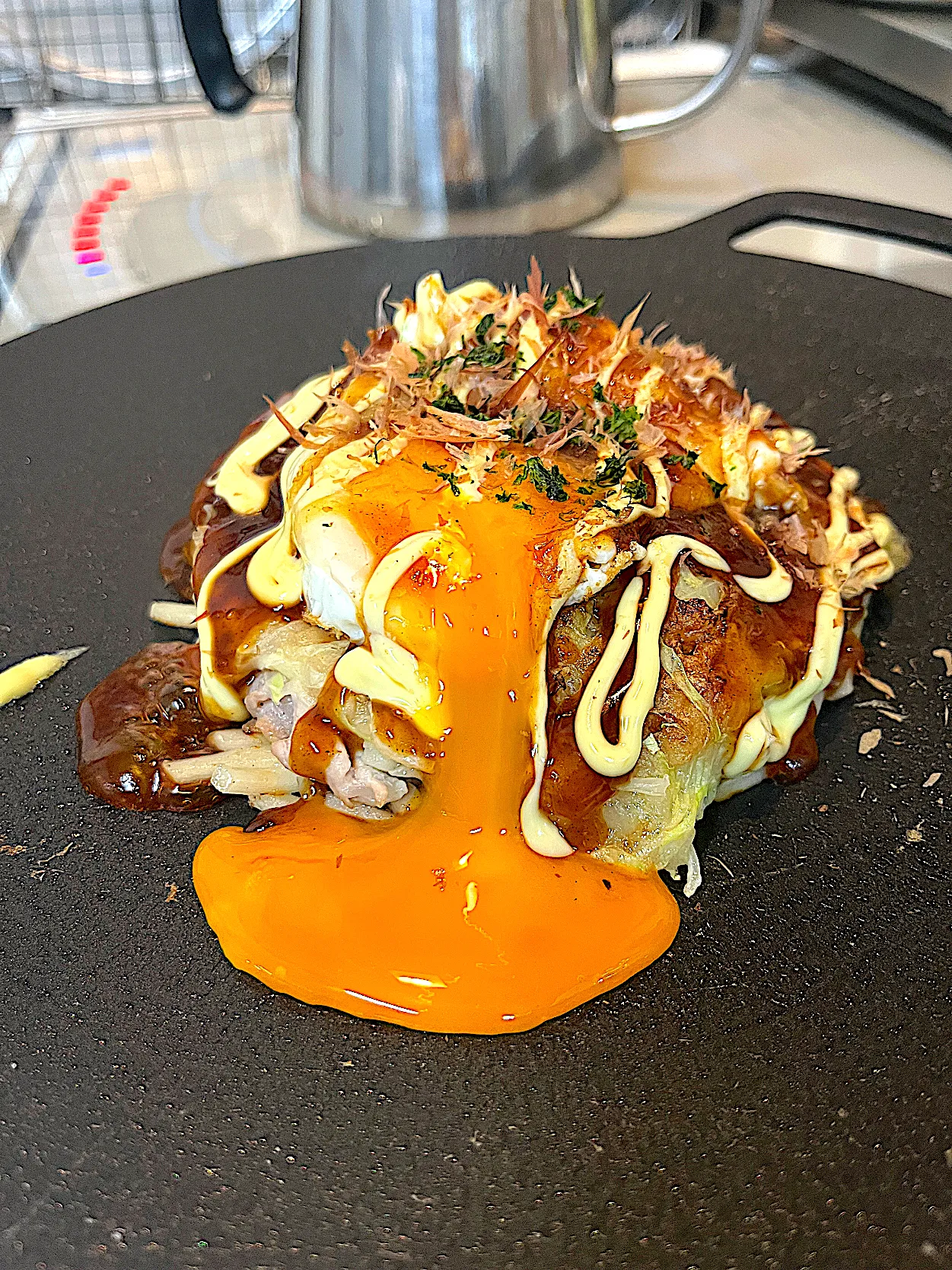 夏に広島で食べた広島焼きを思い出しながらマルチグリドルを鉄板代わりにして作ってみる😊