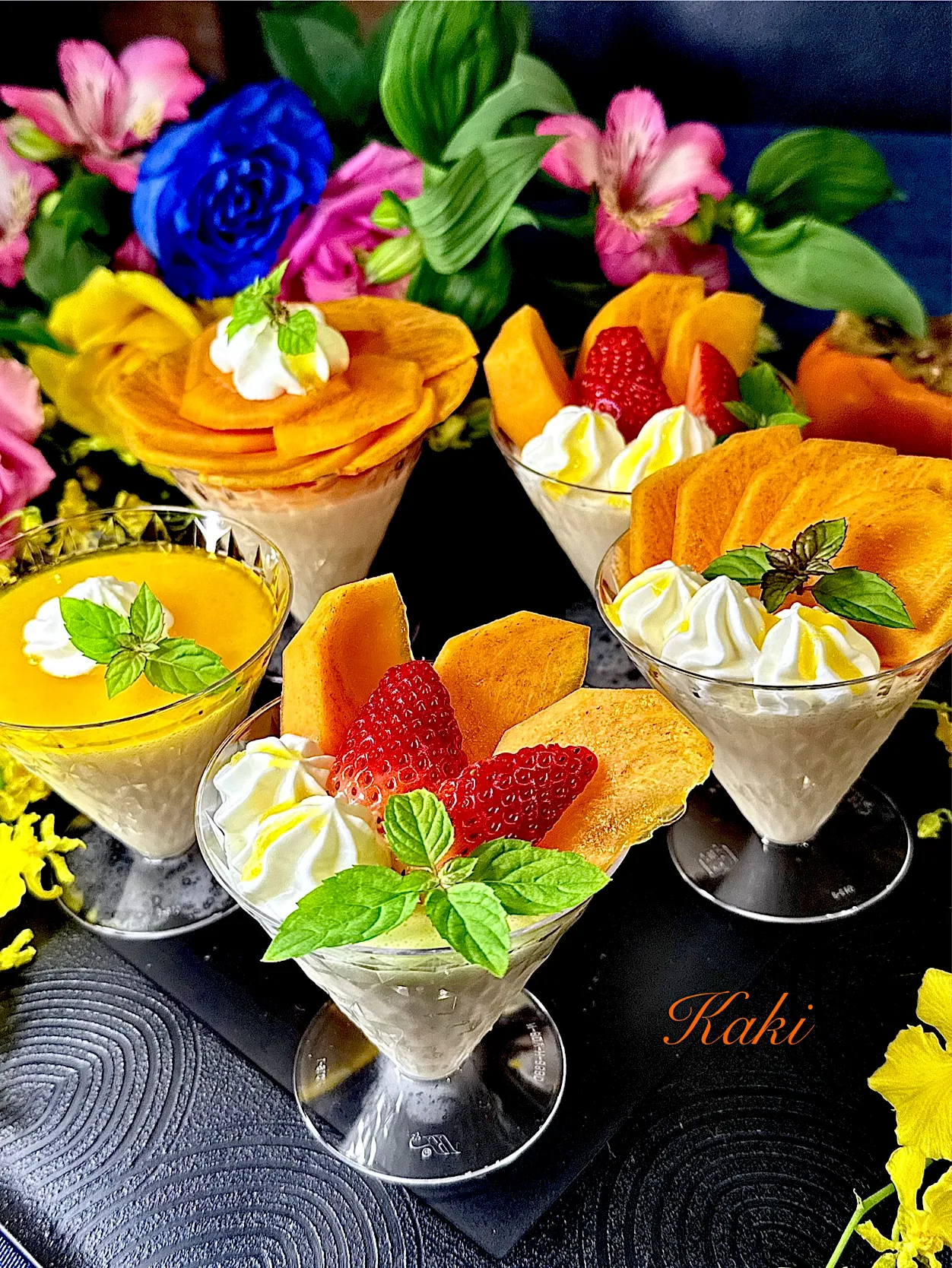 ババロアに柿をお花にしてるんですねぇ素敵♬