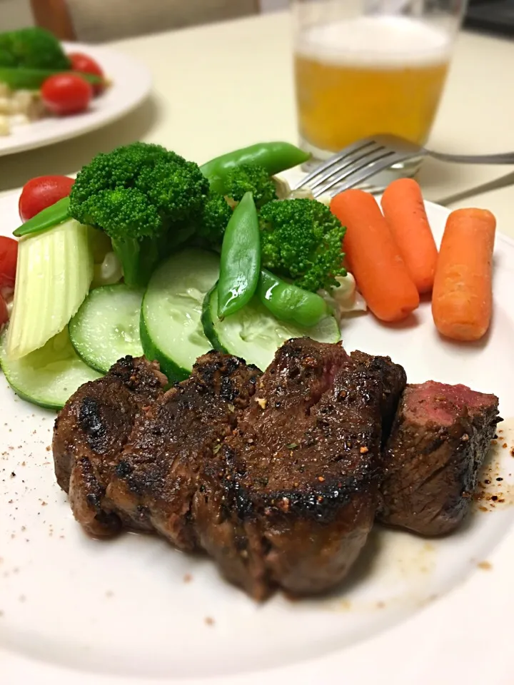 夜ご飯!やっぱり肉とビールは美味かった!!