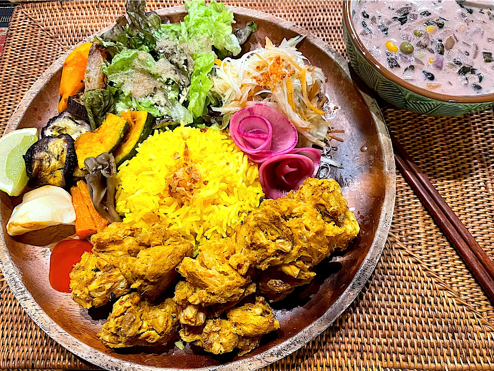 #ターメリックライス #大豆ミート #唐揚げ