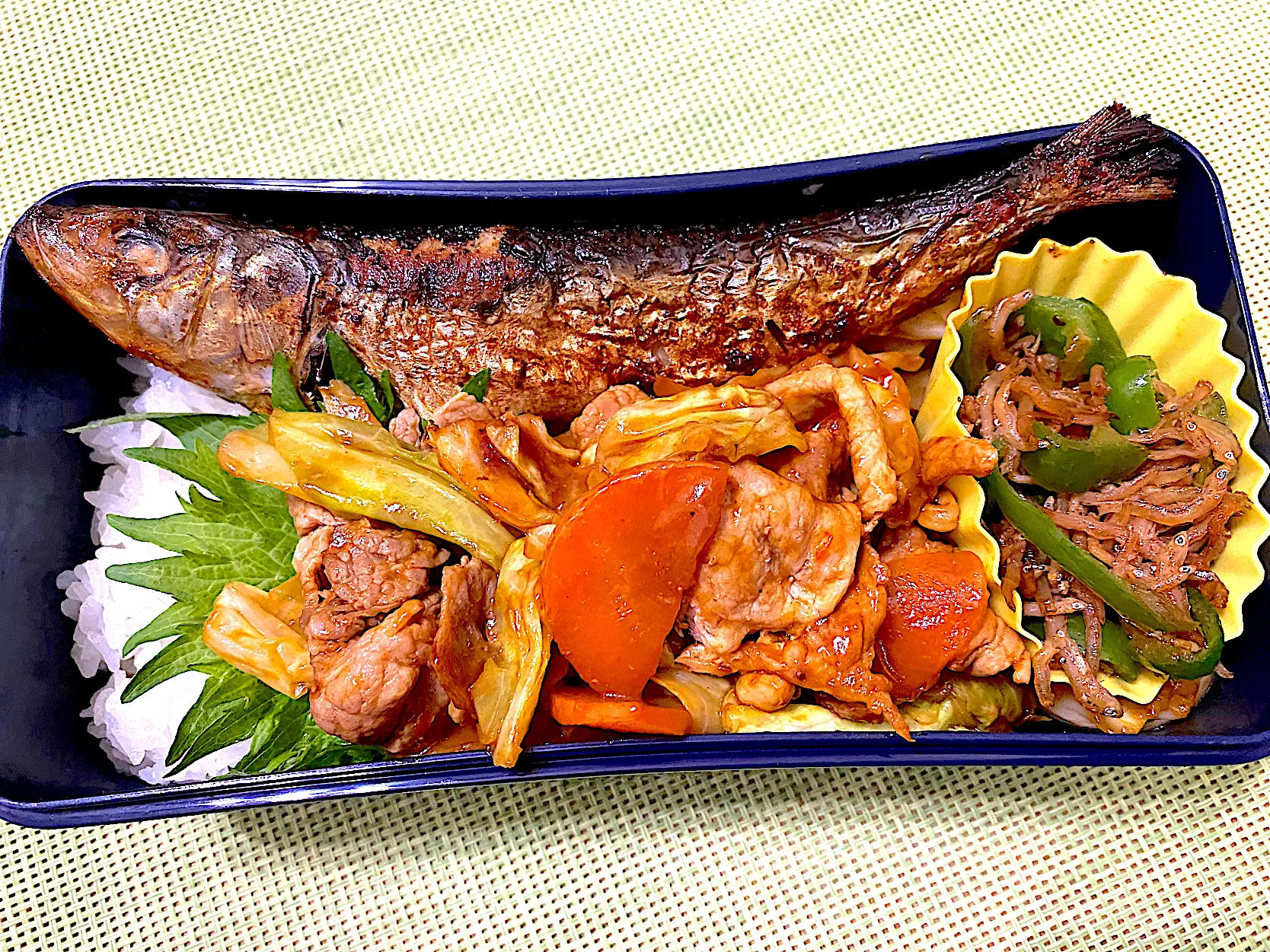 #簡単料理 #単身赴任 #お弁当 #イワシの塩焼き #回鍋肉 #ピーマンとジャコ炒め