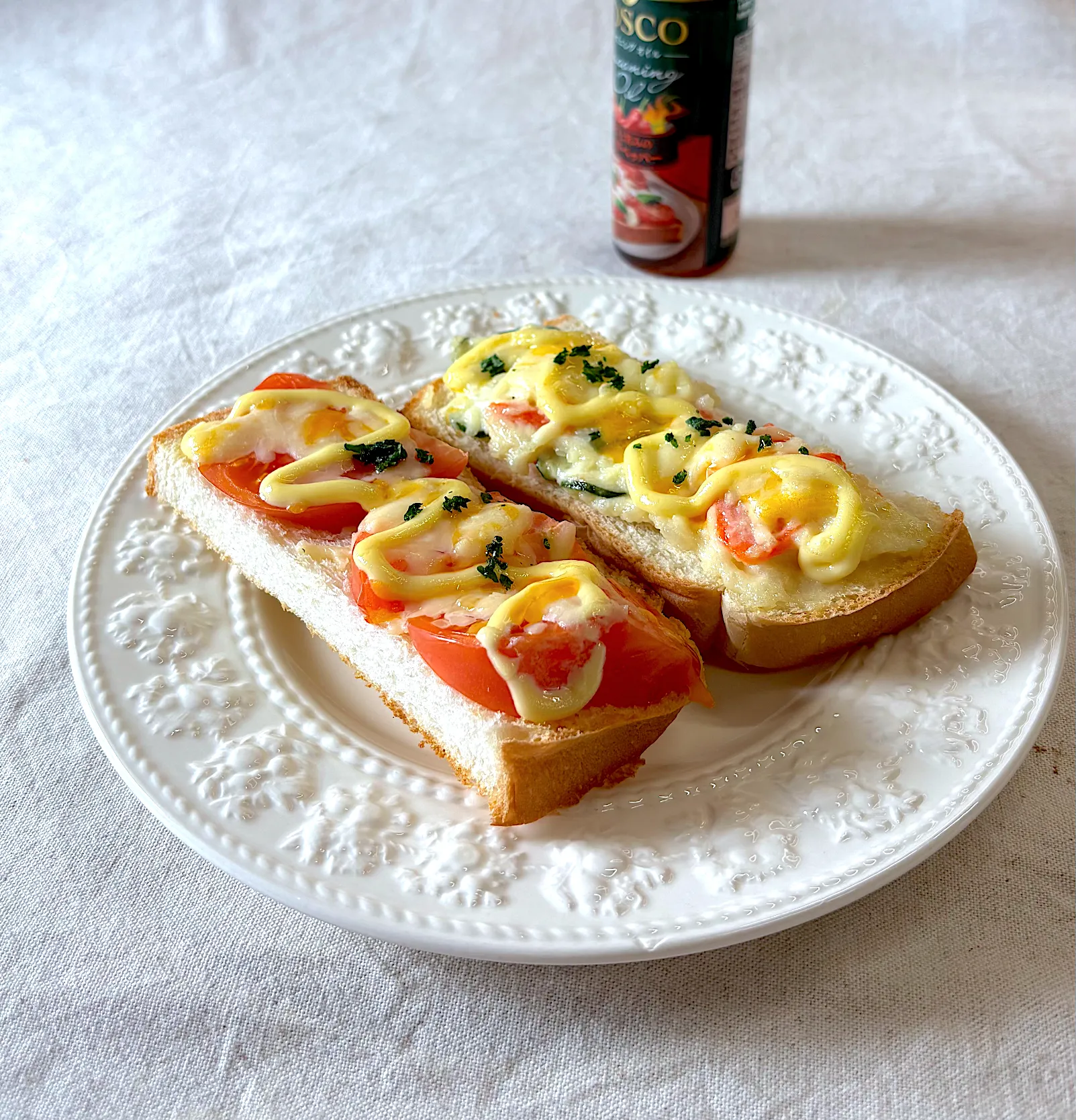 トマトチーズトースト、ポテサラチーズトーストをシーズニングオイルでピリ辛に #クックパッドアンバサダー2023かっちゃん杉 #かっちゃん杉の朝ごはん #かっちゃん杉のトースト #シーズニングオイル