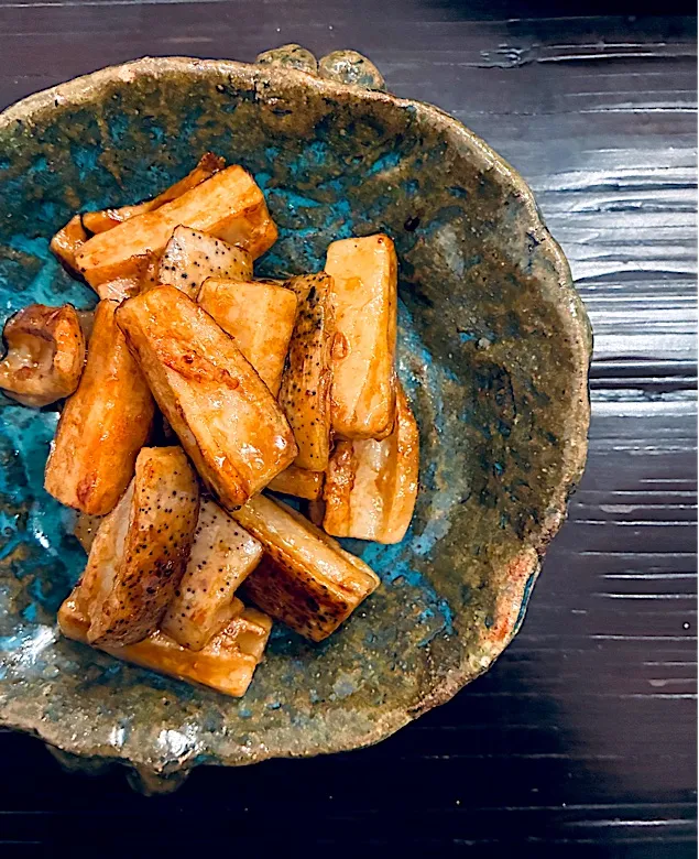 この切り方良いですよね♪まあまあこんがり焼いてもちゃんと食感が残るから好きです😊ほんとレンコンはいろんな食べ方できるからよく使います😋すりおろしはモチモチ系かな?あんまりやったことないから試してみたいです💪