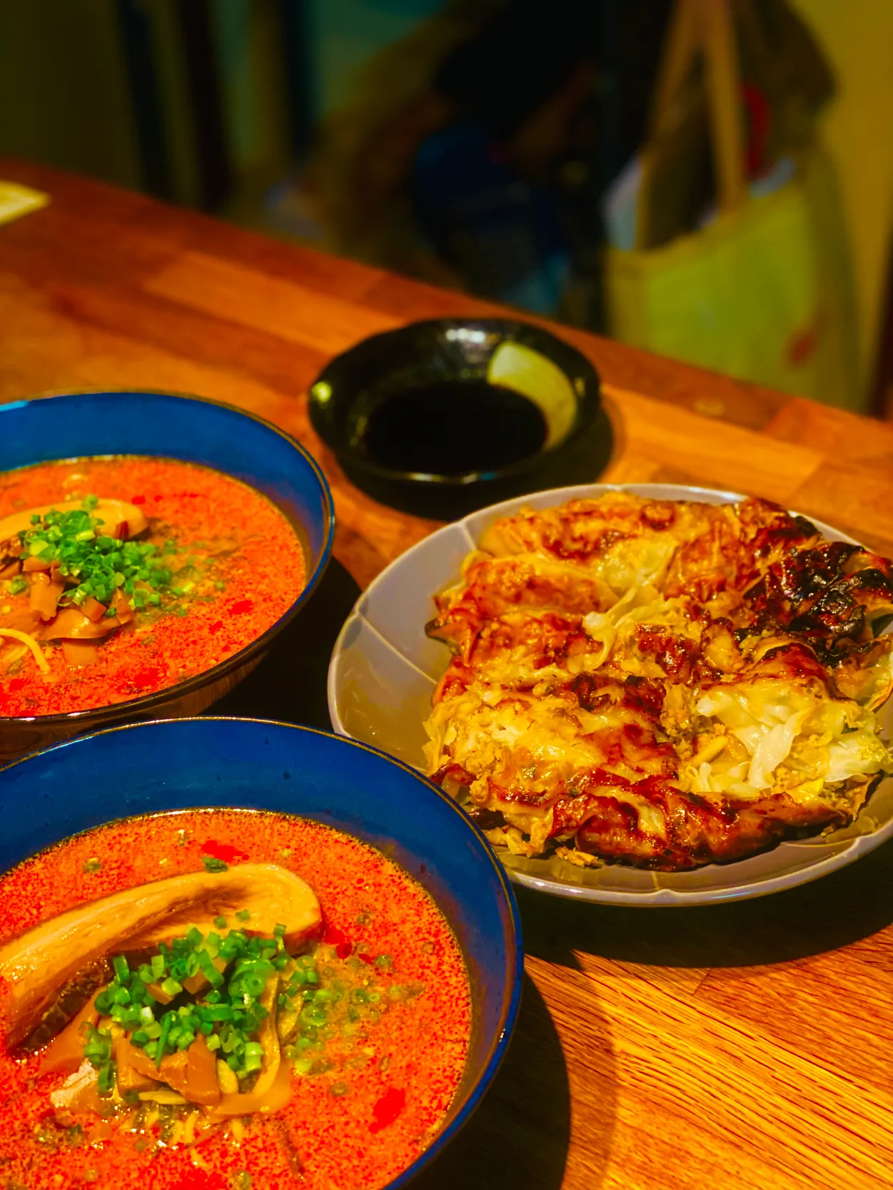 Dinner ! Dinner ! Hot & Spicy ️ Ramen Miso Stock Noodles with Basil & Sesame with Gyoza made by my Friends Mother very nice #ramen #noodles #gyoza #chef
