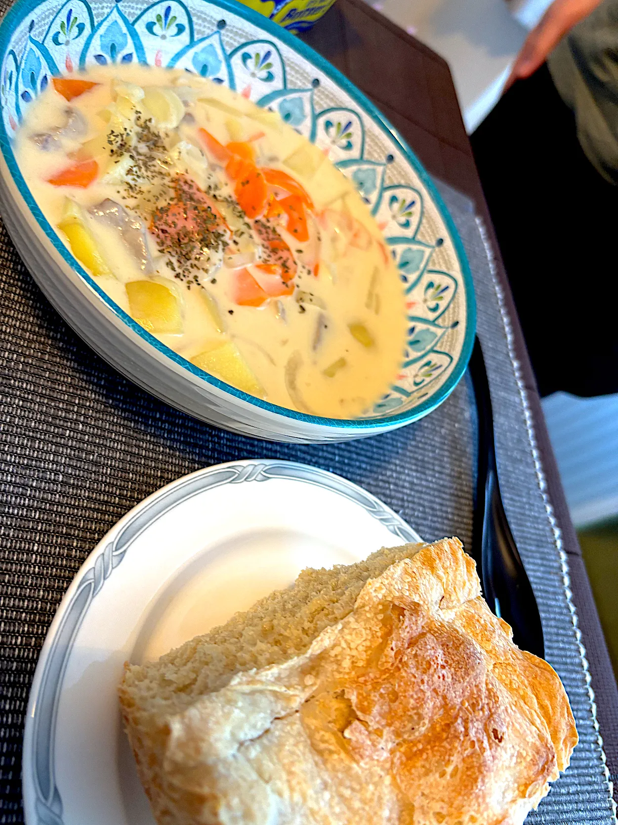 #旦那氏出張から帰宅 #夜ご飯いらないかと思ってた #急遽作ったシチューとパン