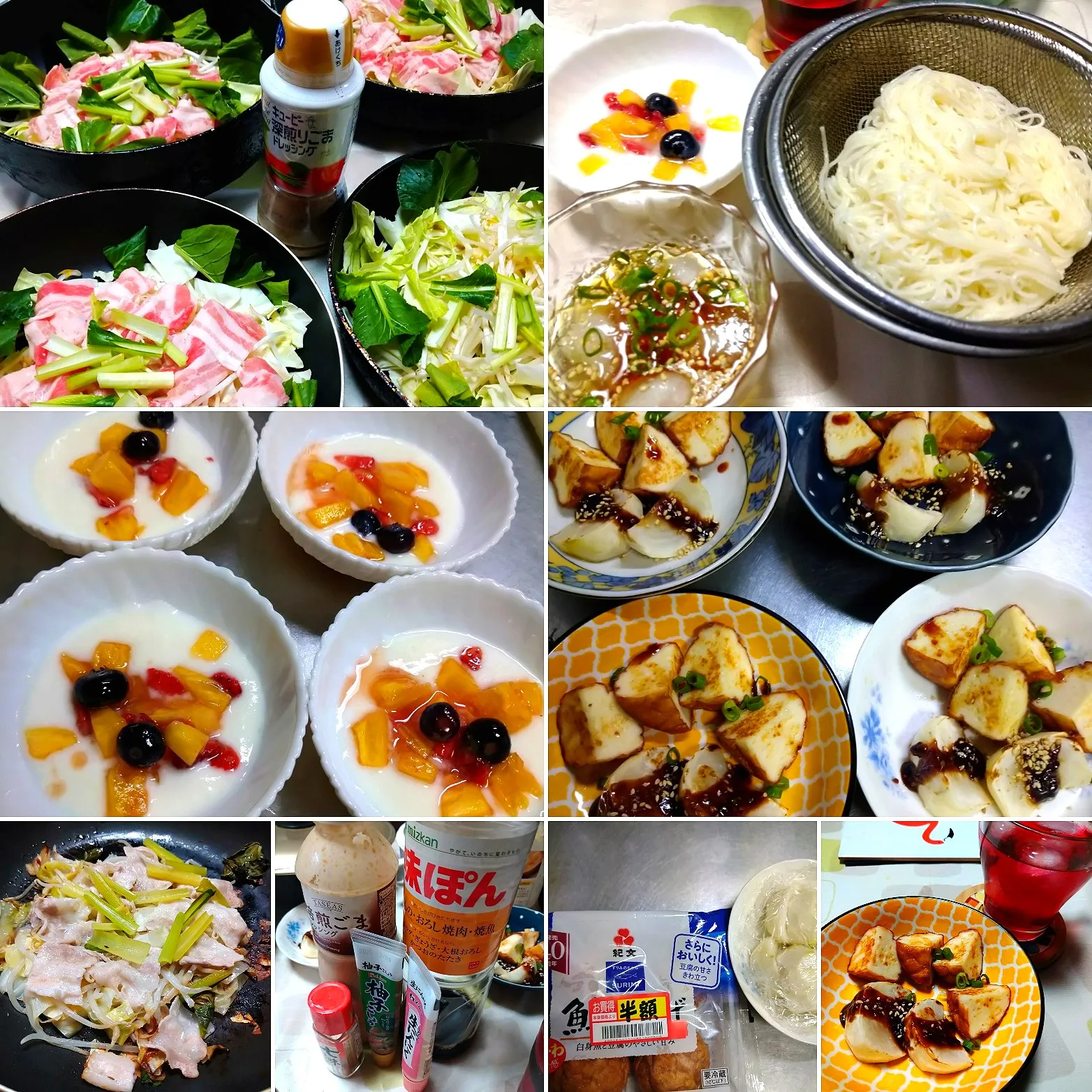 #カブ#蒸し野菜#そうめん#フライパン蒸し#キャベツ#もやし#ごまドレッシング