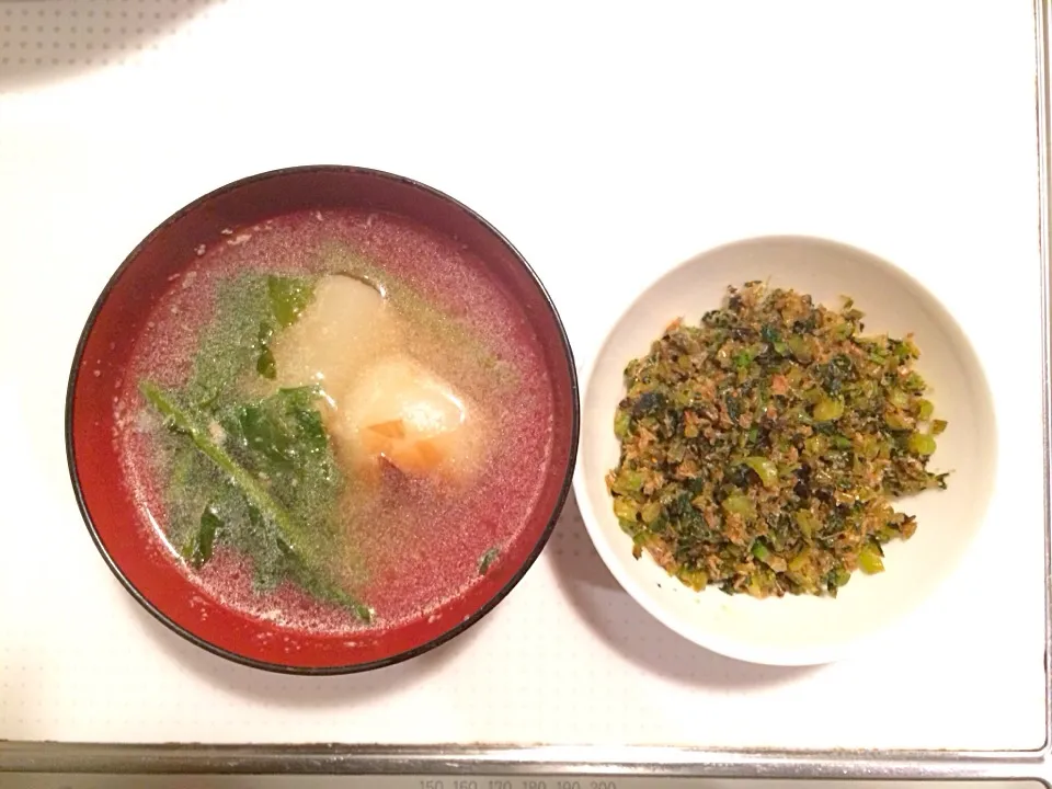 蕪 シリーズ。ヘビーローテの蕪のみぞれスープと、蕪の葉ふりかけ。ふりかけ一度作ってみたかったので。