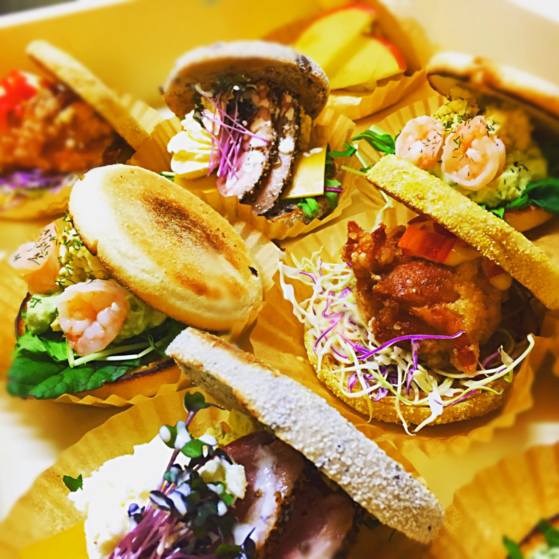 色々挟みます。鴨とか。海老とか。アボカドとか。クリームチーズとか、スプラウトとか。