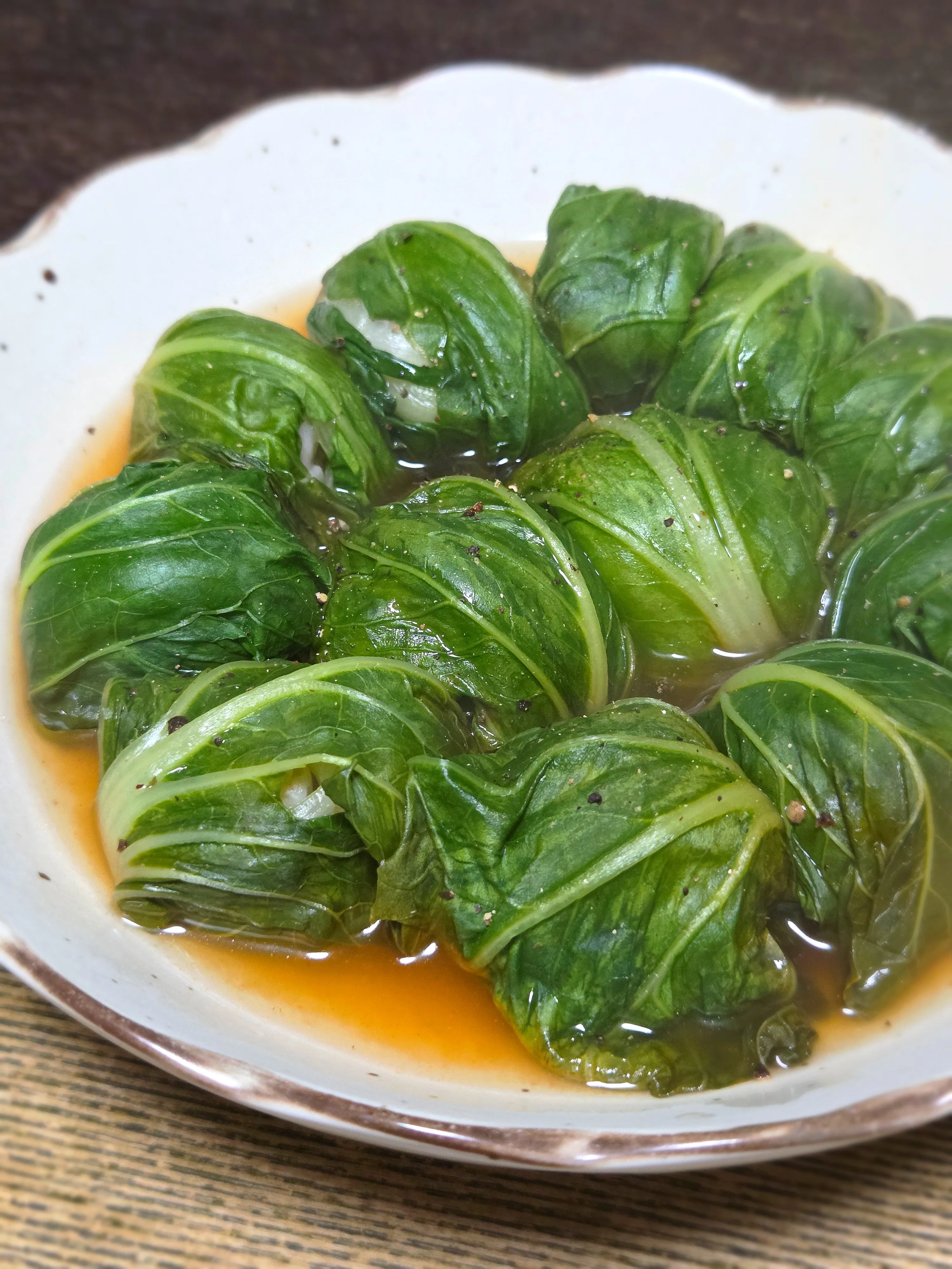 #晩ご飯 #簡単料理 #男の手料理 #ロールキャベツ #なんちゃって #パクチョイ #チルド焼売 #コンソメ #ケチャップ
