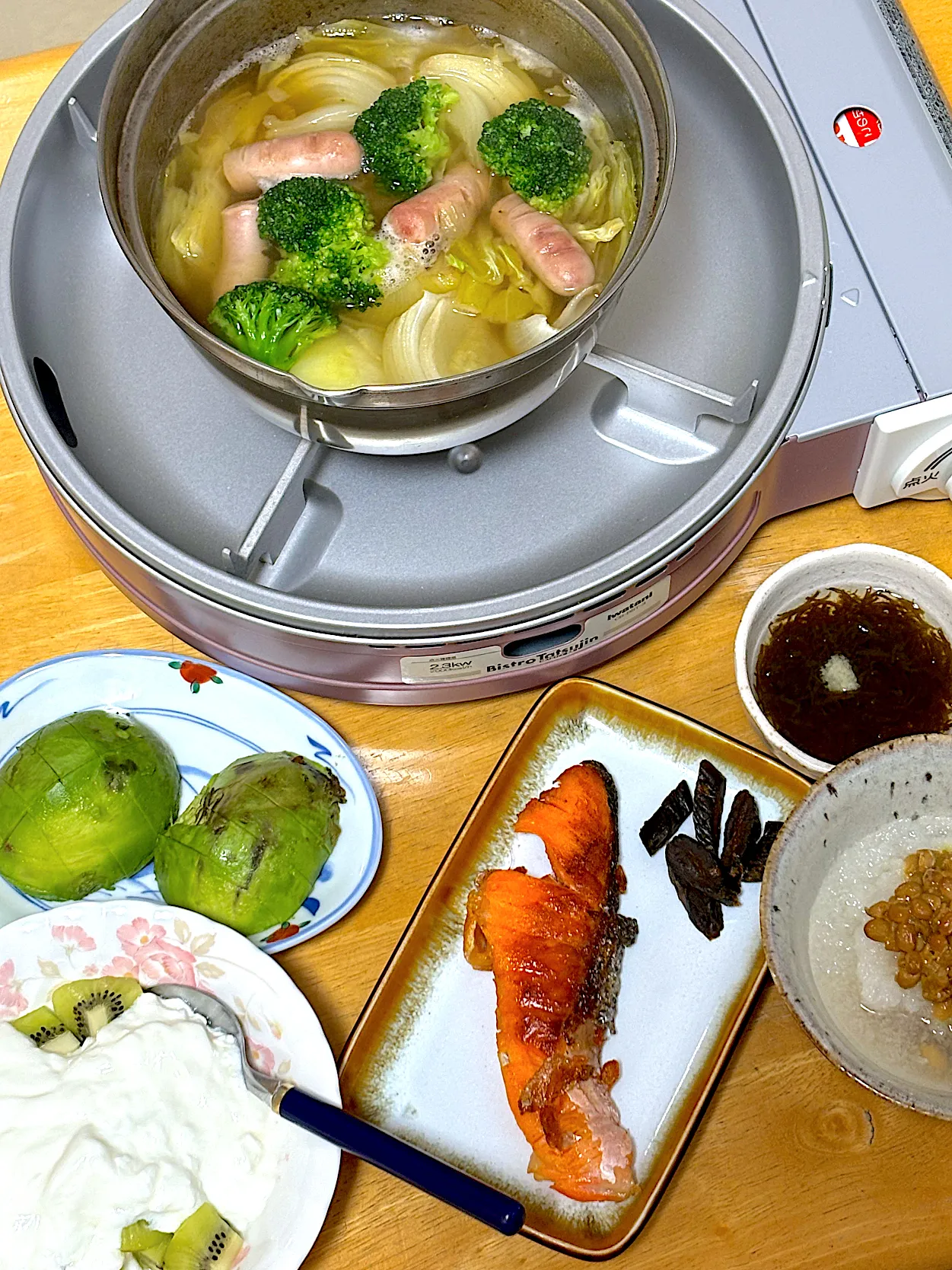 玉葱スープにキャベツ・玉葱・ブロッコリー・ウィンナーを入れただけなのですが。
