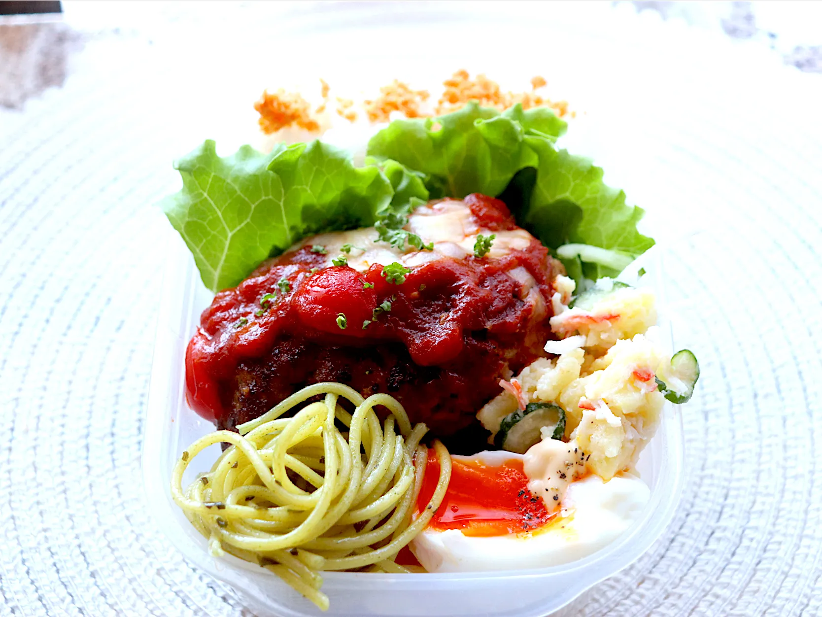 副菜→ポテサラ、ジェノベーゼパスタ、ゆで卵