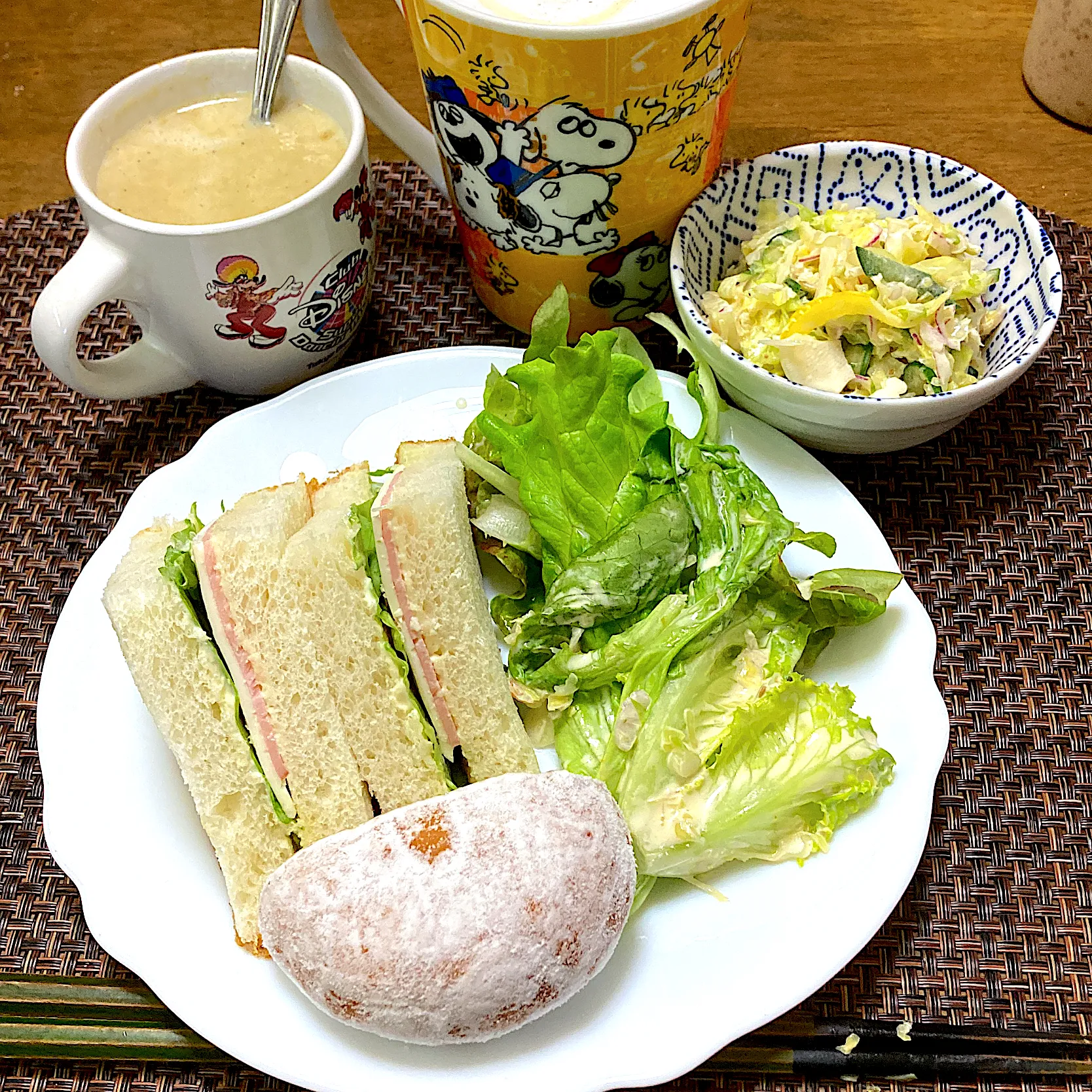 #朝食 #コールスローサラダ #あんドーナツ半分