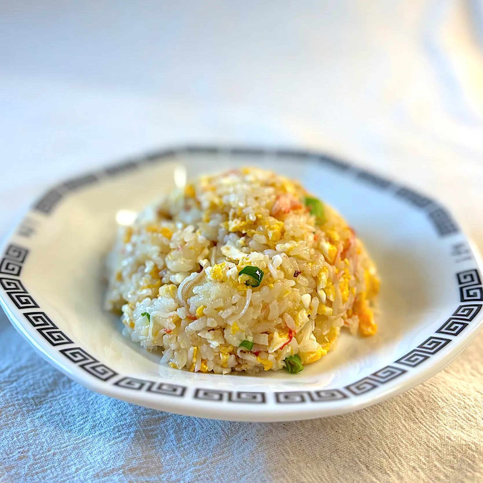 カニカマと卵、ネギだけの炒飯です。今日はリモートの娘のお昼ご飯です。昨日炊いた石川のひゃくまん穀が残ったのでチンして作りました。いつもの炒飯より輝いてるみたい✨甘くて美味しく仕上がりました。 #かっちゃん杉 #クックパッドアンバサダー2023かっちゃん杉 #かっちゃん杉のお昼ごはん #カニカマ炒飯 #ひゃくまん穀 #石川のお米