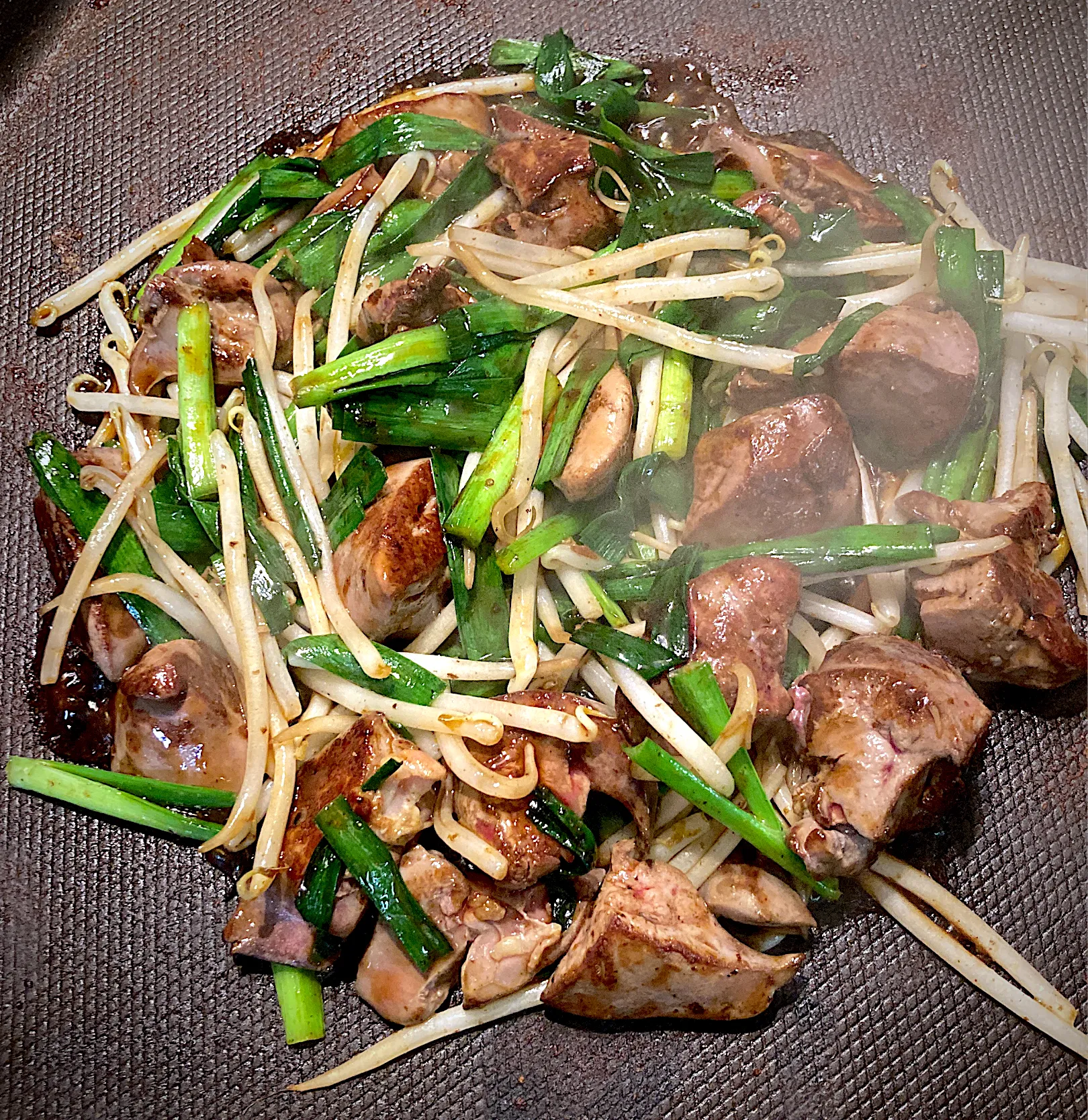 鉄板で鶏レバーのニラ炒めを作りました☺️ #焼く/炒め物 #肉料理