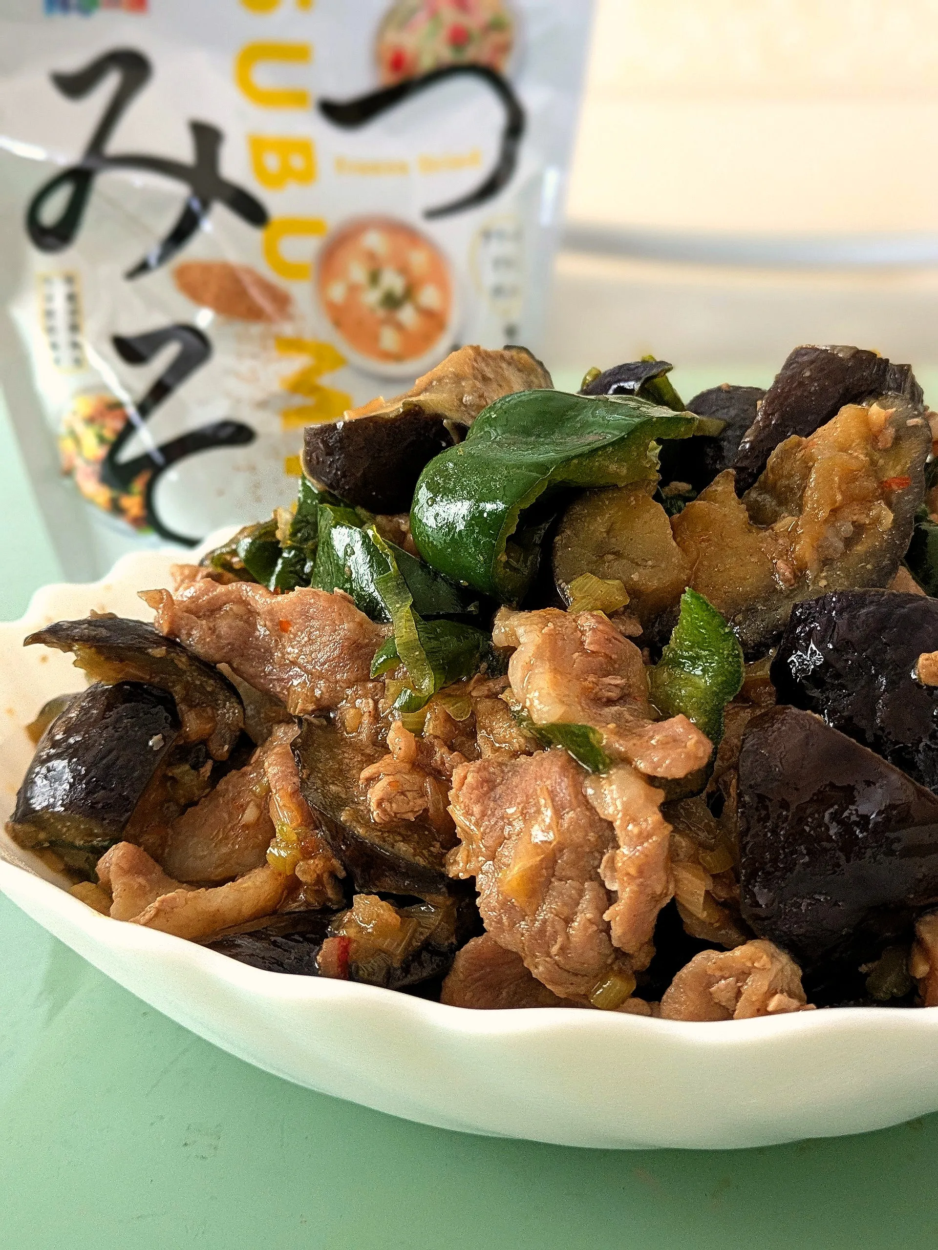 なす味噌炒めです。備蓄?調味料とともに😁#つぶみそ #PR