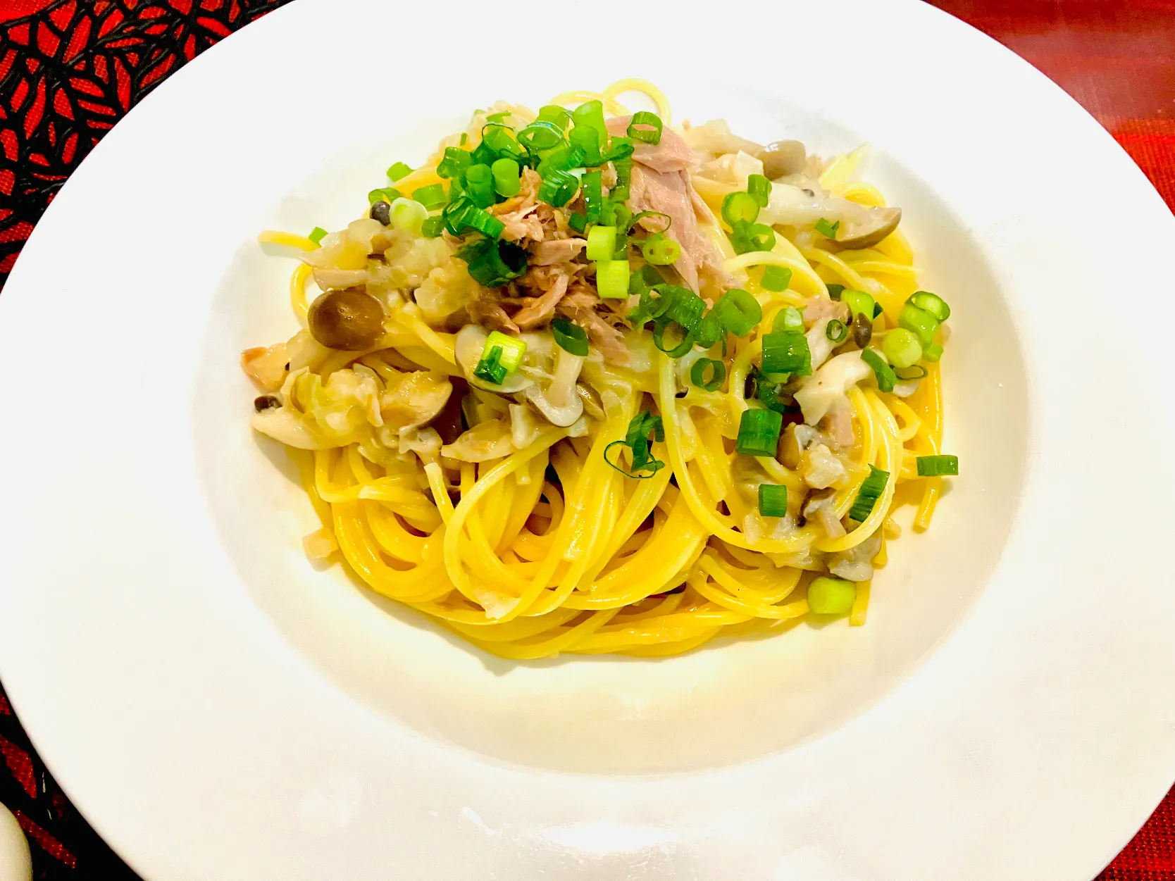 #豆乳 #ツナ #玉ねぎ #しめじ #万能ねぎ #和風だし #白だし