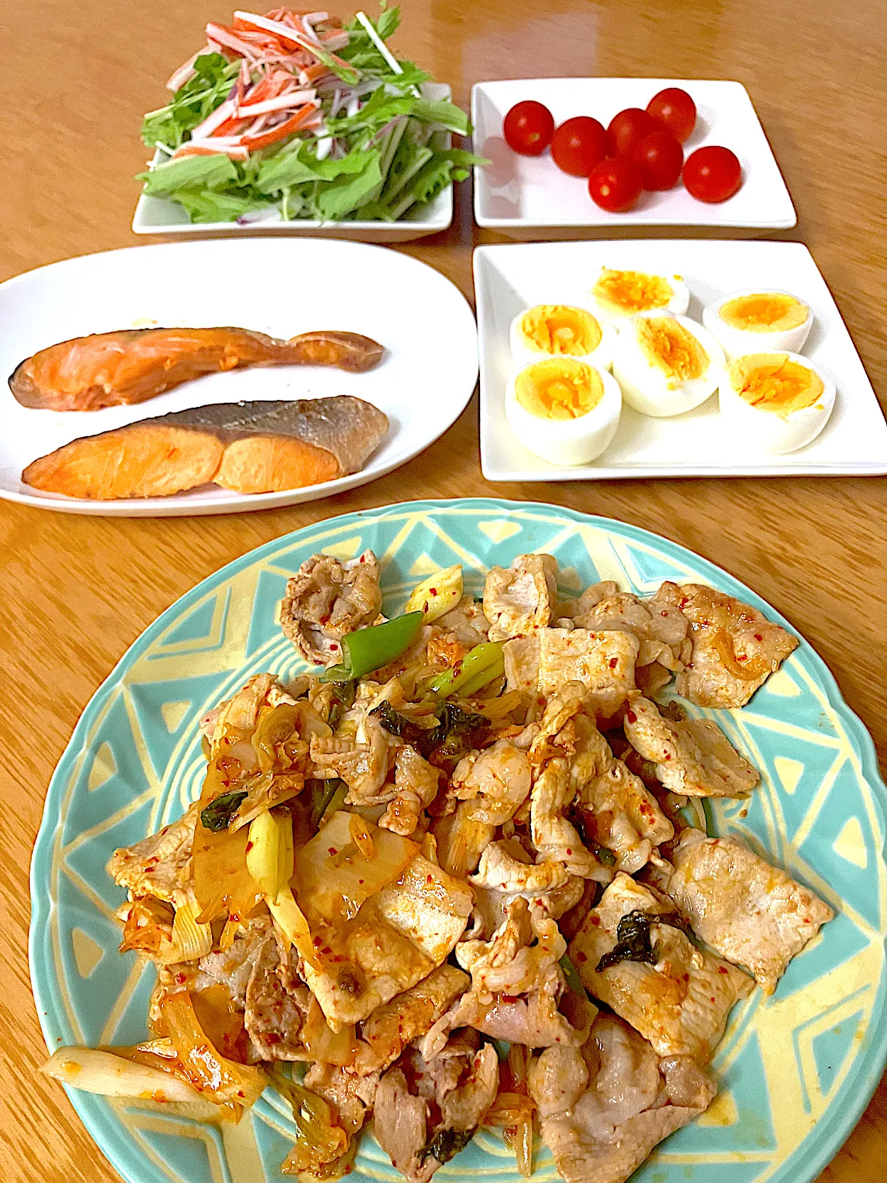 🥗水菜•紫玉ねぎ•カニカマ 胡麻ドレ