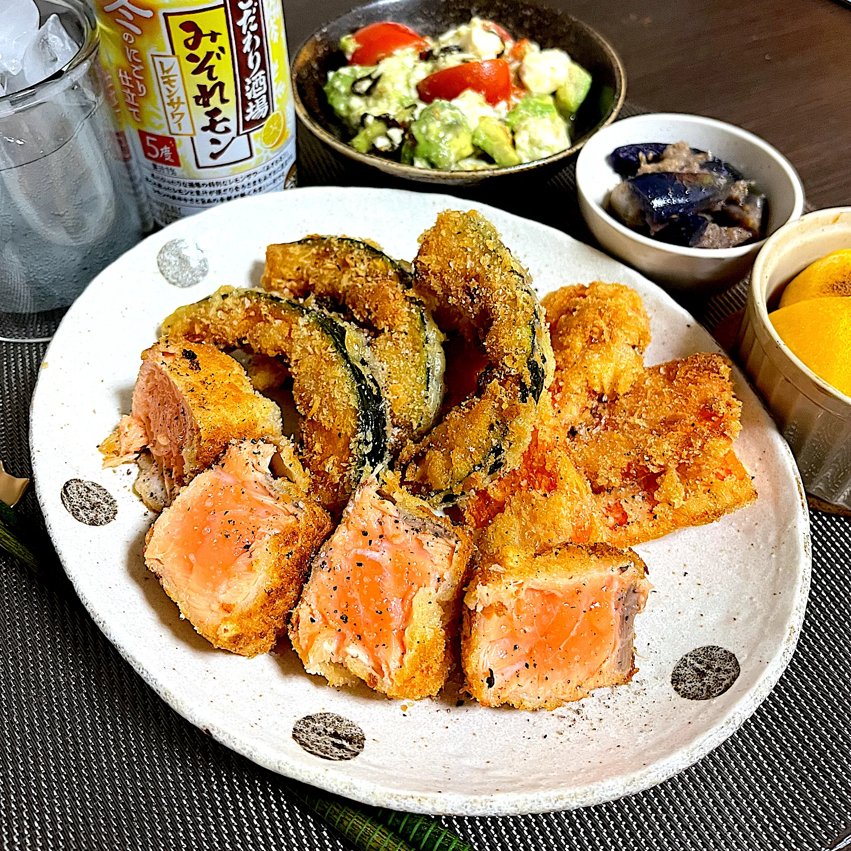 カツにせずに、アボカドと下味付けたサーモンを和えもおいしくなる気が((o(。>ω<。)o))ワクワク