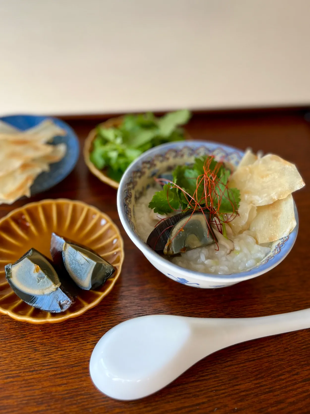 そのまま食べても美味しい皮蛋をお粥にトッピングが美味しそう♡