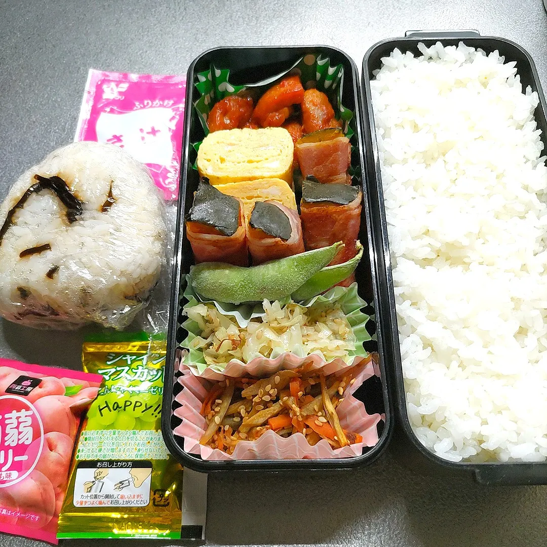 毎日卵焼き 自然解凍枝豆#グルテン控えめ #追加のおにぎり #つくりおきおかず #高校男子お弁当 #こんにゃくゼリー #大会弁当