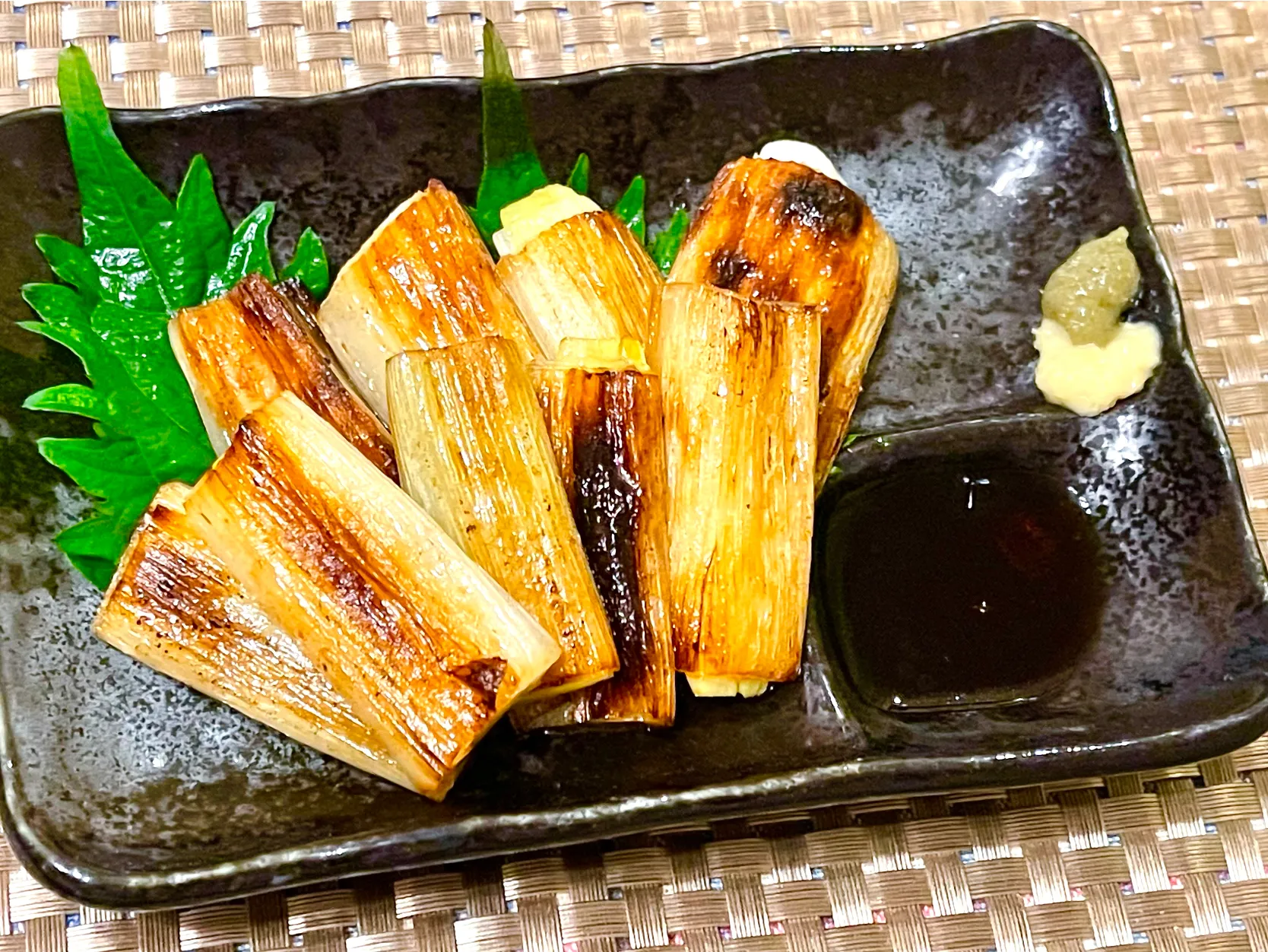 太くてしっかりしたお葱だったので シンプルに焼いて 柚子胡椒と生姜で