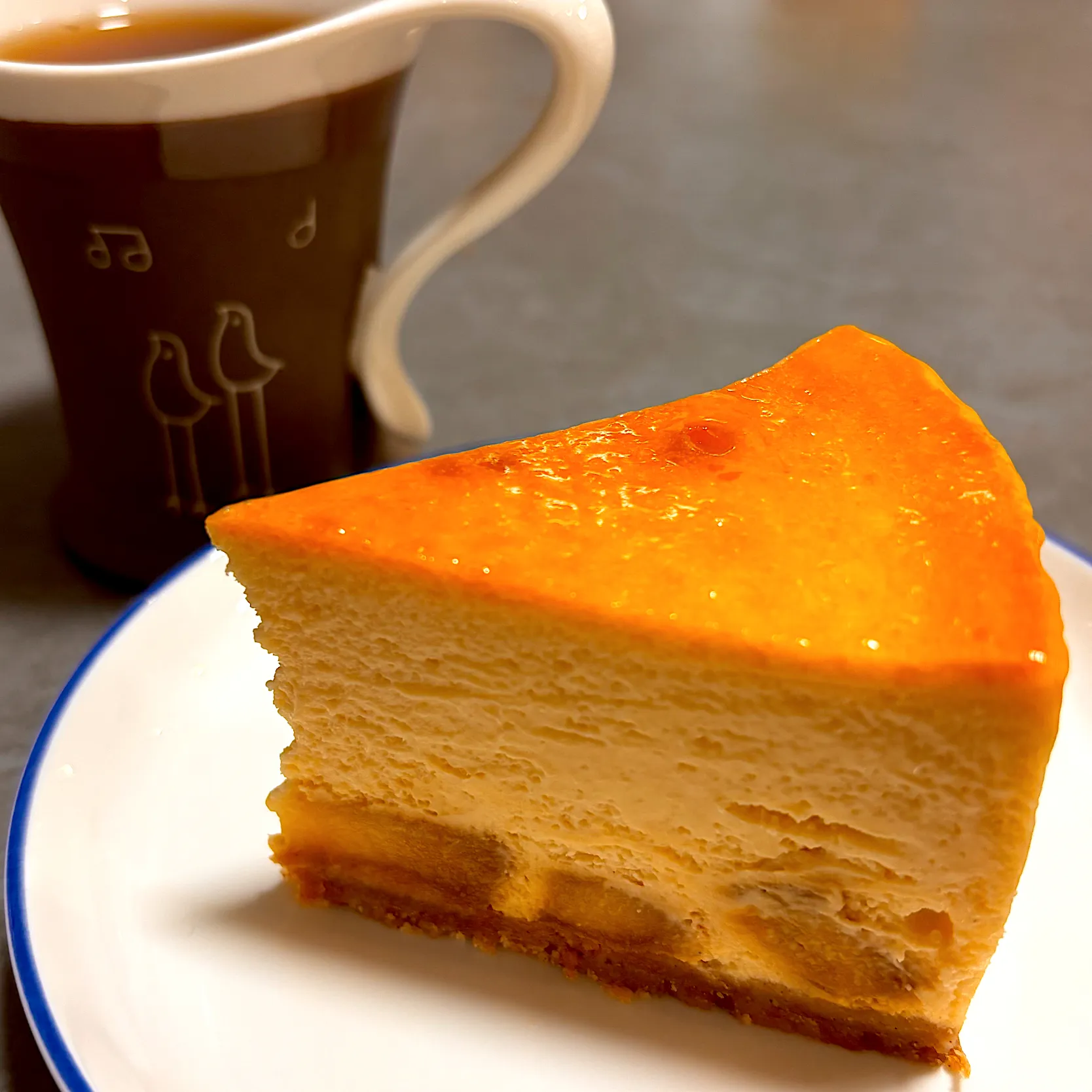 りんごのカラメルの甘酸っぱさと湯煎焼きのニューヨークスタイルで濃厚なチーズケーキがめちゃくちゃ合います🍎🧀